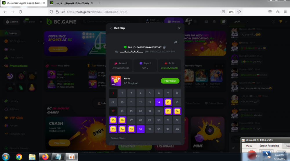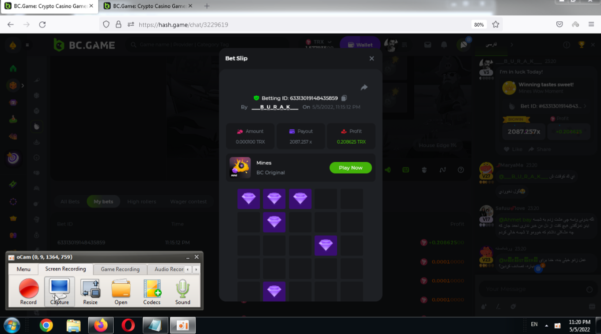 9. بازی کرش اول به قسمت کلاسیک میریم قسمت ادونست و گزینه Simple رو میزنیم بعد مقدار شرط رو یه مقدارد کمتر از نصف موجودی قرار میدیم به طور مثال اگر 100 ترون داریم شرط رو 40 ترون میزاریم ضریب هم میزاریم روی 2 قبل از اینکه دست بعدی شروع بشه اینو اوکی میکنیم و سریع میریم قسمت ترنبال ترنبال قرمز رو هم 40 تا روی اتوماتیک میزاریم و اوکی میکنیم به این ترتیب توی هر دست ما به اندازه 80 ترون وگر میزنیم با این توضیح که اگر اون دست سبز باشه نه میبریم نه میبازیم و موجودیمون کامل بر میگرده اما اگر هم قرمز بشه به اندازه چهار صدم از شرطی که گذاشتیم کم میشه که در مقابل وگری که میخوره خیلی ناچیزه بعد در جریان بازی همینطور که وگر میخوره میتونیم یه صفحه دیگه باز کنیم و آروم آروم تو یه بازی دیگه که توش مهارت داریمم اون مقدار ضرر جزیی رو هم جبران کنیم موفق باشید
