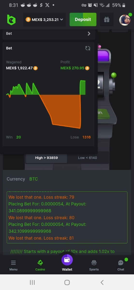 1. Here is another shot. This is within the same run. Notice the loss streak and the recovery. I plan on sharing the script once I test it some more.