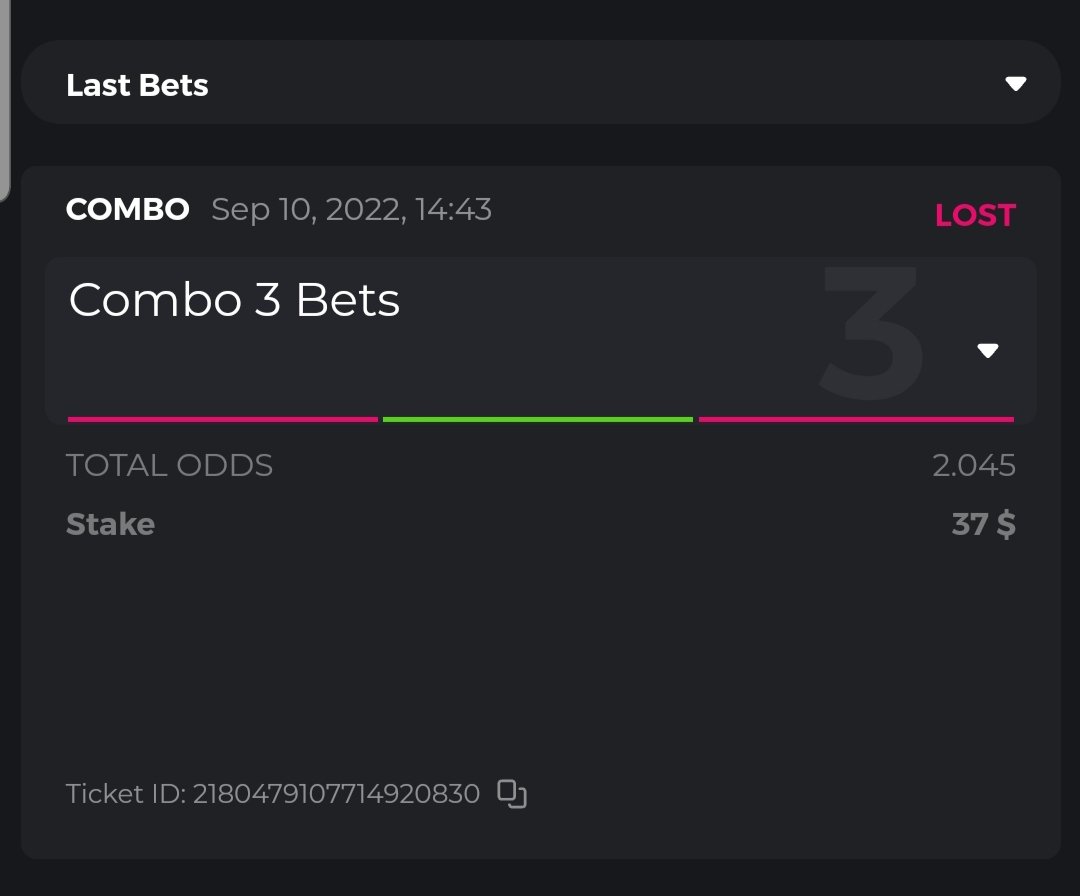 12. I think I was too tired and made the wrong bets with different sites.... haha Heres my losing ticket on bc... but bet nft somewhere else. Lol and I must of bet this not thinking its bc games haha