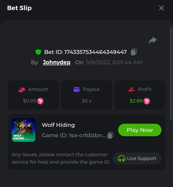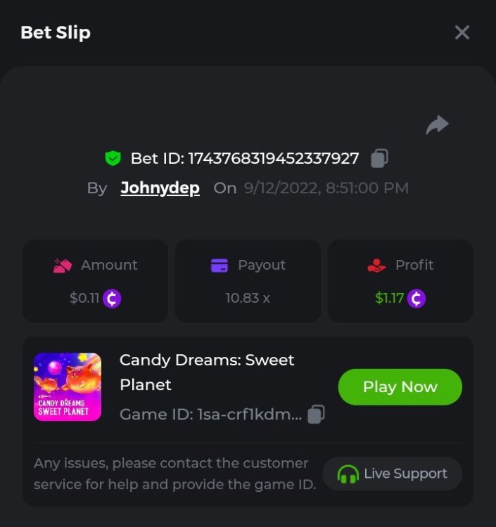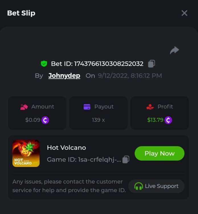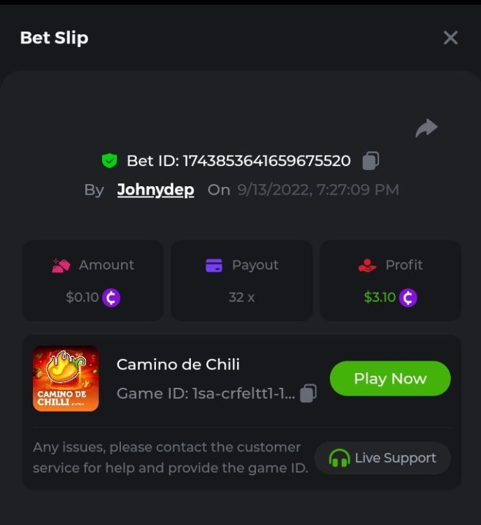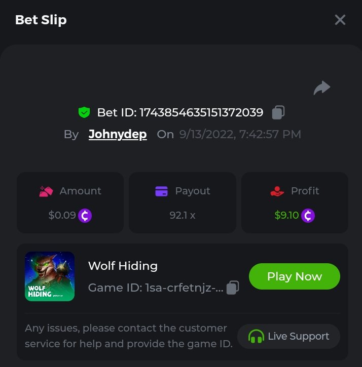 Summary of bets: Wolf Hiding - 92.1x https://bc.game/sd/?sd=10SWD3YOXODYC3 Hot Volcano - 172x https://bc.game/sd/?sd=10SWECOKO7LB0Z Camino de Chili - 43.6x https://bc.game/sd/?sd=10SWN4USZGTBF7 Candy Dreams: Sweet Planet - 110.9166x https://bc.game/sd/?sd=10SWCMDXTVZ40J ________________________________________________ Qualified Bets History: https://bc.game/sd/?sd=10SIRPXTYKVNRN https://bc.game/sd/?sd=10STXZI1P16043 https://bc.game/sd/?sd=10STZLEZ9JSUTV https://bc.game/sd/?sd=10SU090CTBS2DV https://bc.game/sd/?sd=10SU0IN62ZDGCZ https://bc.game/sd/?sd=10SU1F26JQA9SJ https://bc.game/sd/?sd=10SWBBN3RT8T1V https://bc.game/sd/?sd=10SWBQ3ZLH18NN https://bc.game/sd/?sd=10SWC5N7RQJ47N https://bc.game/sd/?sd=10SWCMDXTVZ40J https://bc.game/sd/?sd=10SWD3YOXODYC3 https://bc.game/sd/?sd=10SWDXU8FOPXJN https://bc.game/sd/?sd=10SWECOKO7LB0Z https://bc.game/sd/?sd=10SWMIN6PWG5CJ https://bc.game/sd/?sd=10SWN4USZGTBF7