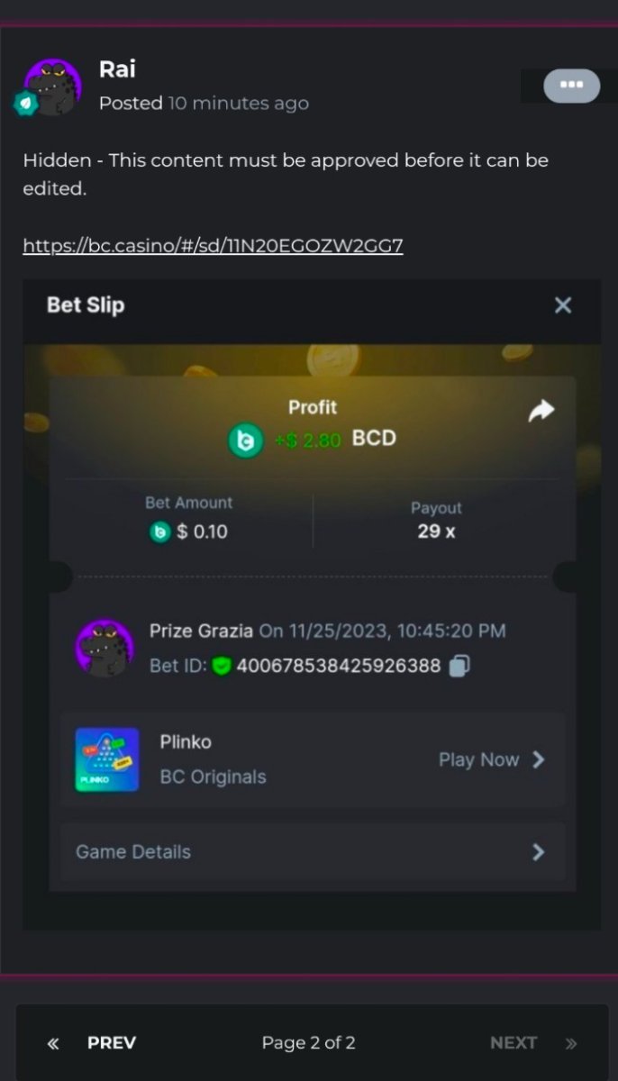 3. Hello sir my post in plinko challenge  is hidden thus other participants can't see my post, please unhide it. I cannot continue submitting if my posts remain hidden just deposited 35$ tonight to join challenge.