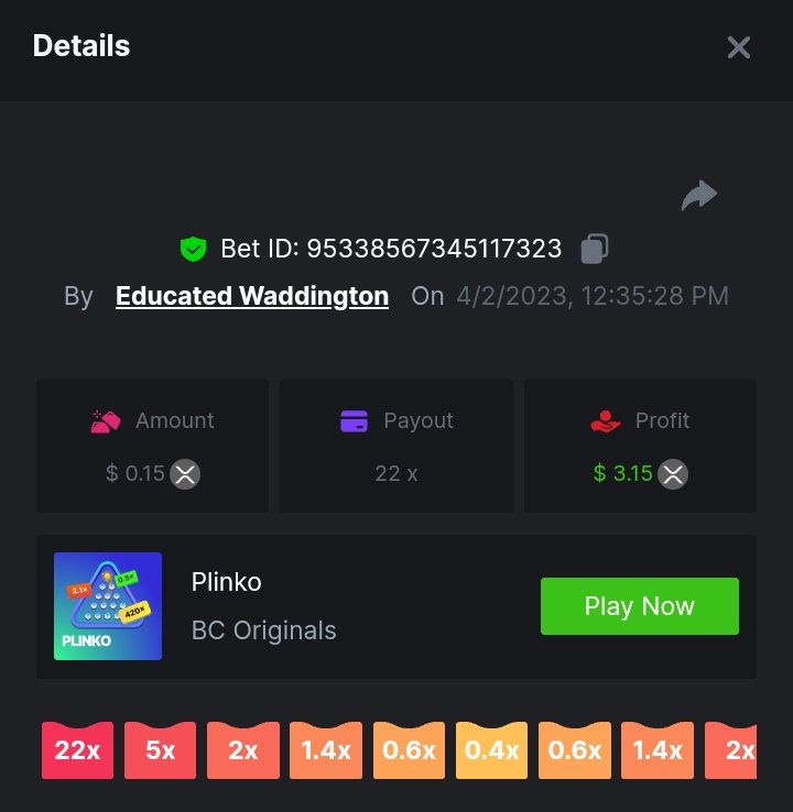 8. Please lower bets to .1 or .2$ to get more participants, in pragmatic slots it's hard to reach 10x so chances are bet with 50c will just drain ppls pockets. I lose all my balance playing. Most players were unhappy despite the comeback of slots and sports due to higher vip requirements or higher bets. Hope youll be more considerate.