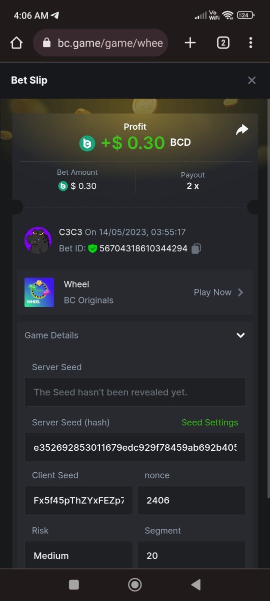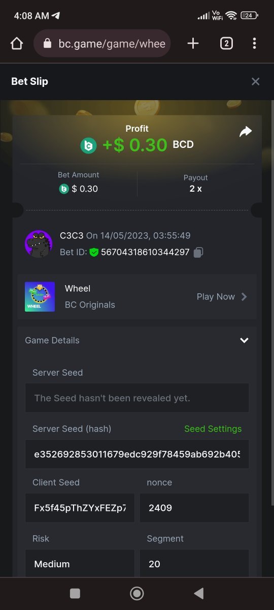 C3C3 replied to BCGame_Maxim's topic in VIP Challenges