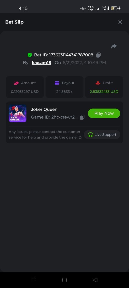 Joker Queen Bet ID - 1736231144341787008 https://bc.game/sd/?sd=10N3UVTQT3VOR7 Wild Cash Bet ID - 1736231645023475463 https://bc.game/sd/?sd=10N3VA6W3I09HV