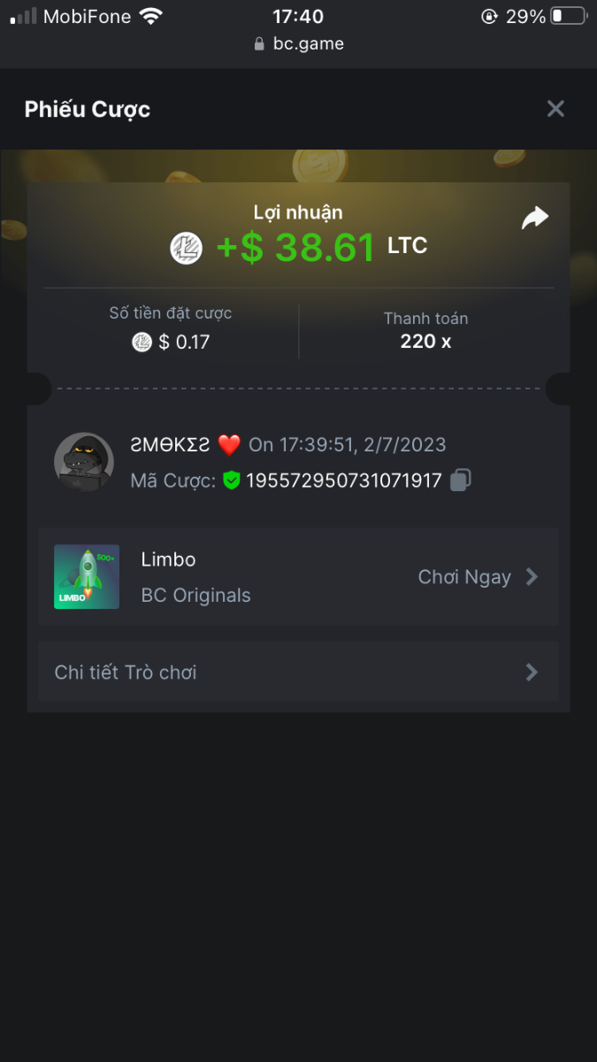 5. I've joined the forum event; Now it's your turn to win generous rewards from BC.GAME! Bet id : 2291914185115836550