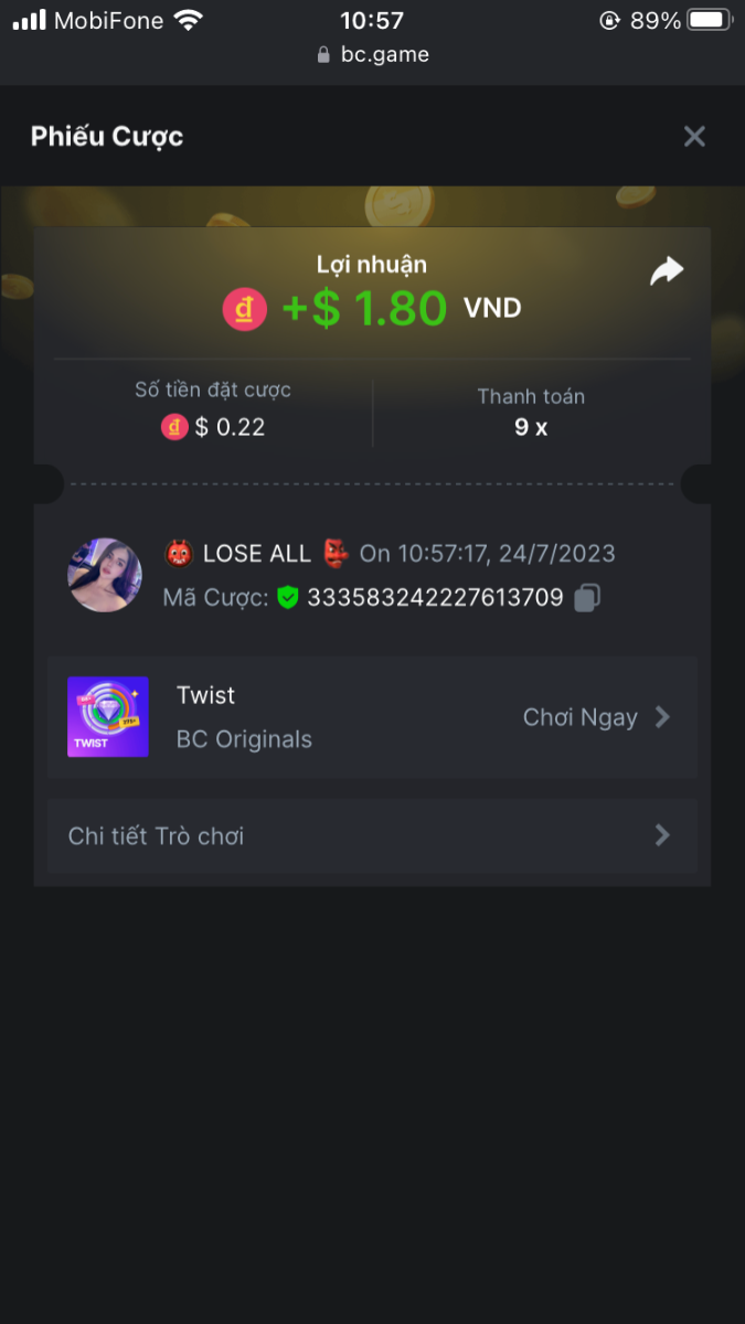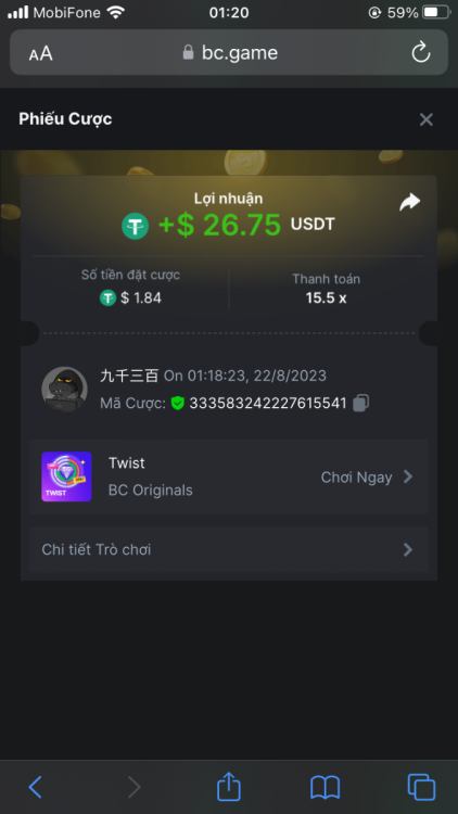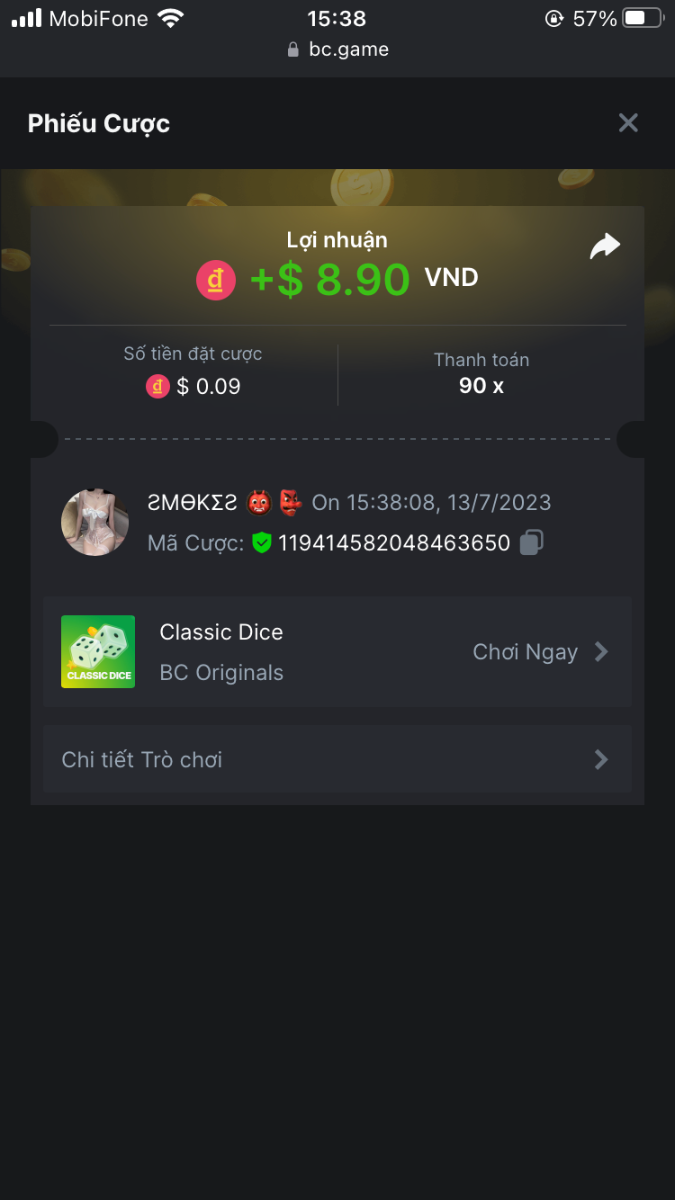 4. I've joined the forum event; Now it's your turn to win generous rewards from BC.GAME! Bet id : 2294427155662254197