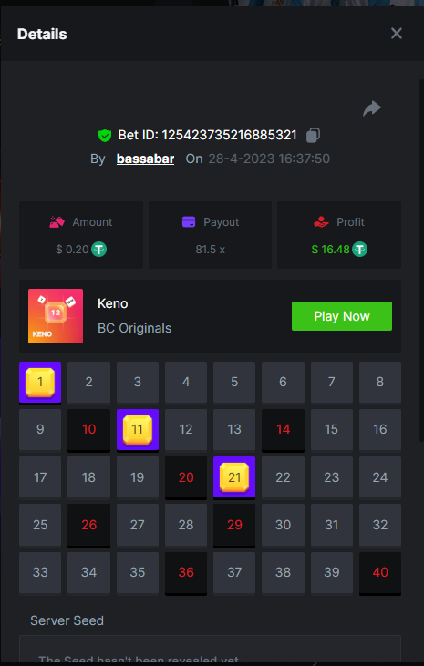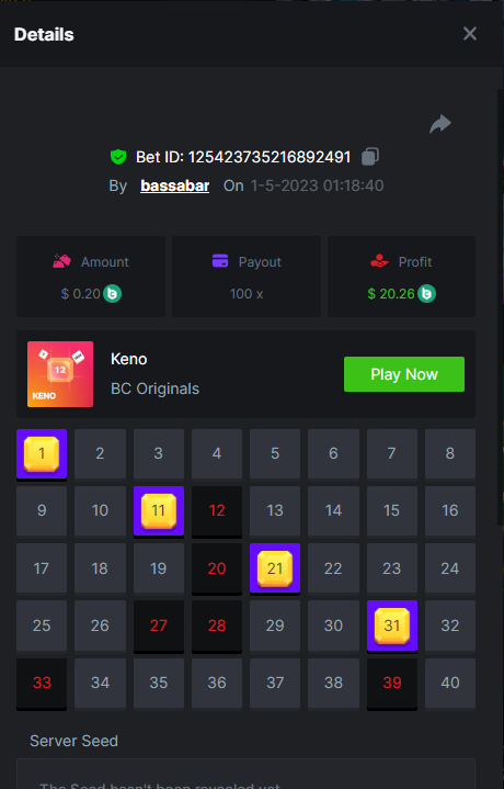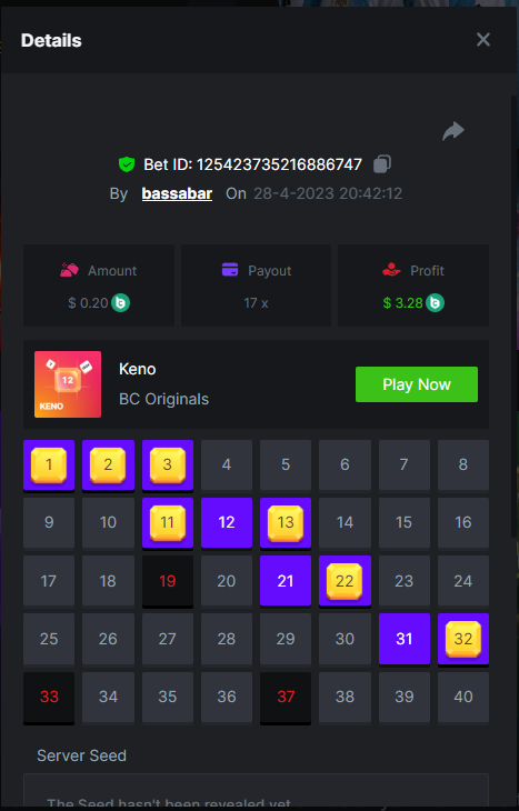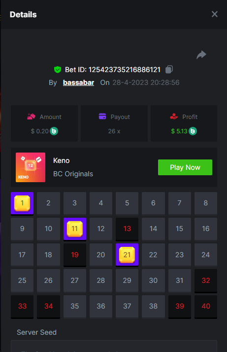 Total points: 13/21 5.10x https://bc.game/#/sd/118J46M4RS06XF 8x https://bc.game/#/sd/118J56MQ527CPF 11x https://bc.game/#/sd/118J57SIF67C43 17x https://bc.game/#/sd/118JKPN1K4FXG3 26x https://bc.game/#/sd/118JJVT0EGE237 30x https://bc.game/#/sd/118JKXNCY2FJF7 56x https://bc.game/#/sd/118J5GO4DS0OWJ 63x https://bc.game/#/sd/118OZOAU4KPT03 81.5x https://bc.game/#/sd/118J5KKFL285XV 100x https://bc.game/#/sd/118P08ZVQT5PN7 180x https://bc.game/#/sd/118P0PMTC3LE6R 250x 270x https://bc.game/#/sd/118P0YMN19M68J 350x 450x 500x https://bc.game/#/sd/118JMHBD6HSL5F 600x 710x 800x 900x 1000x Good luck to all pariticpants. I won't depo a penny here anymore, you won't have to be concerned I get more points then this/up my basebets anymore The reason is bc.game only cut/fully take away our perks and the Limbo challenge from which a participant got disqualified, but prizes were not corrected afterwards. With this combination they crossed a line from my point of view. Have fun and maybe I'll see you guys on other platforms, wish you all the best, best regards, Bassabar