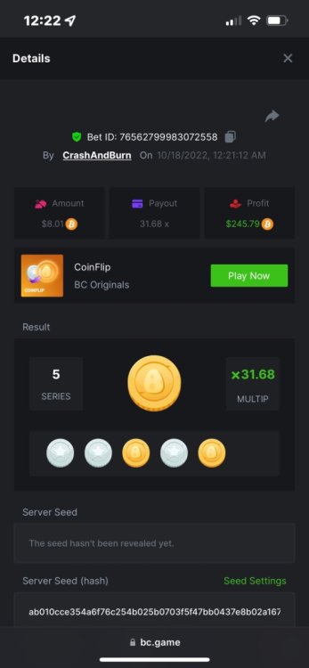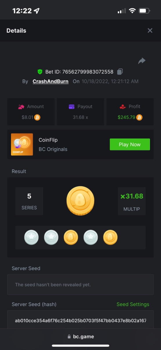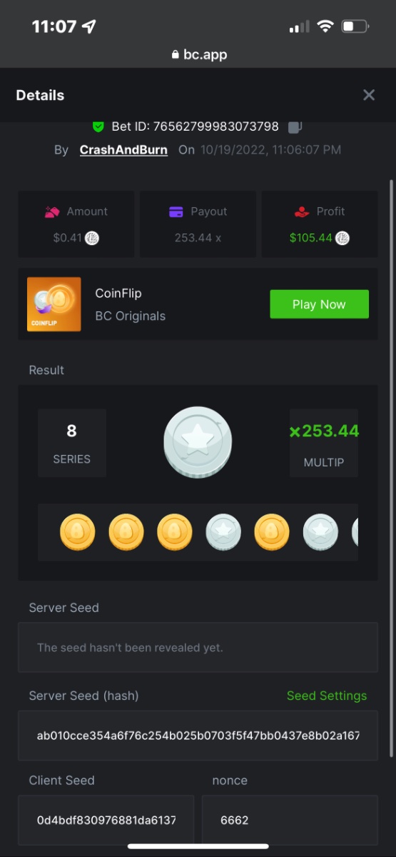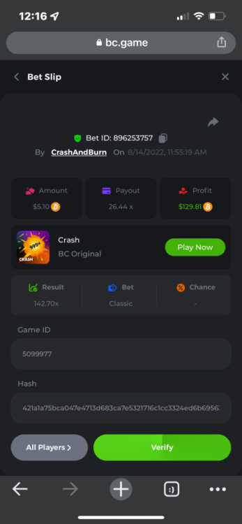2. https://bc.game/sd/?sd=10QUKAZHDVBK7N And just cause it was graat and just about exactly 24 hrs ago don’t have the link tho or in fiat but damn