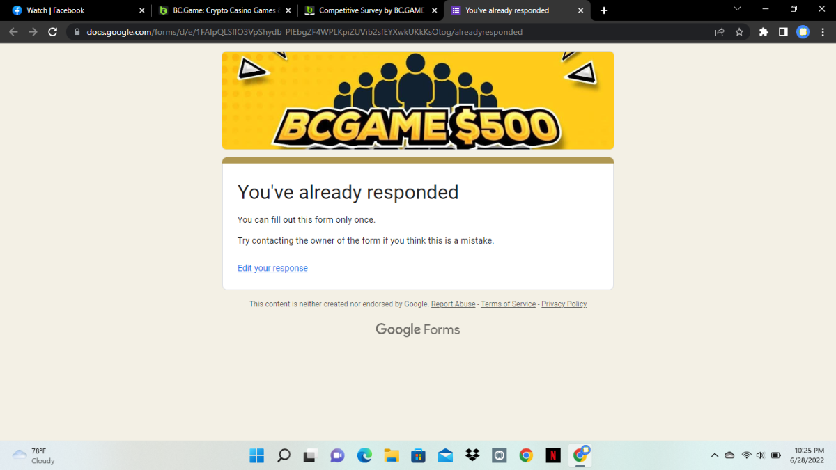 Nyehannyehan Posted June 28, 2022 Share Posted June 28, 2022 Finished the survey. Hopefully bc.games makes unlocking of bonus money easier... Hope we make top 100 hehe. Link to comment Share on other sites More sharing options...