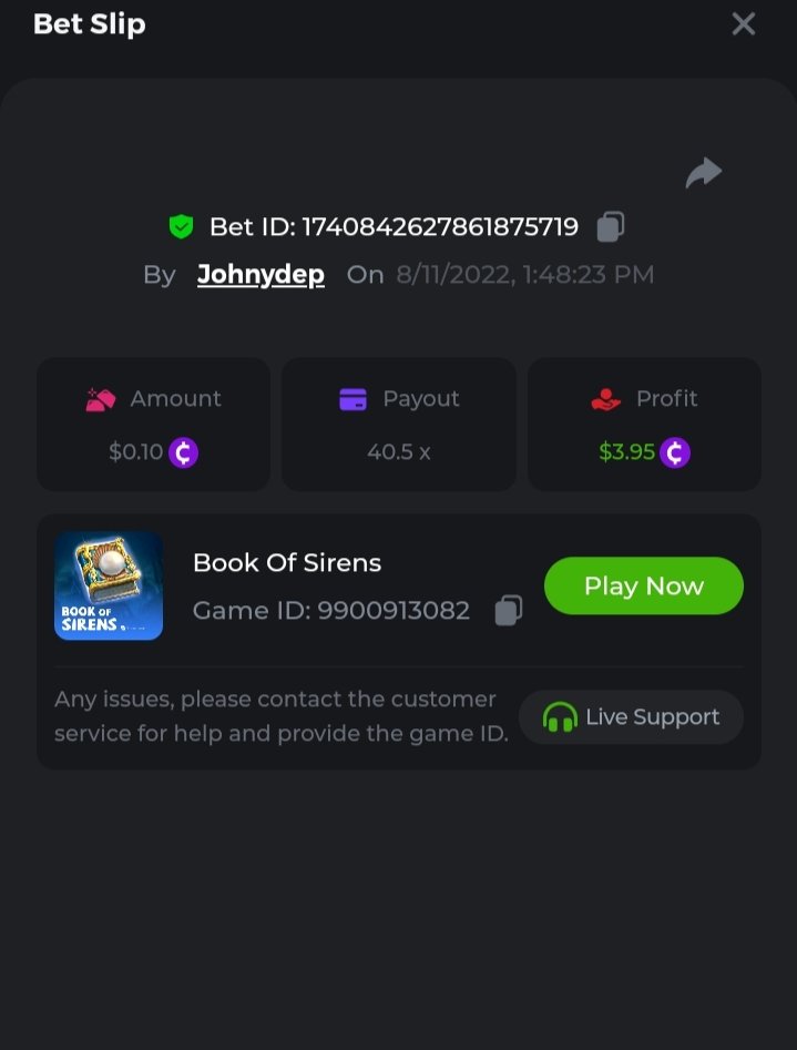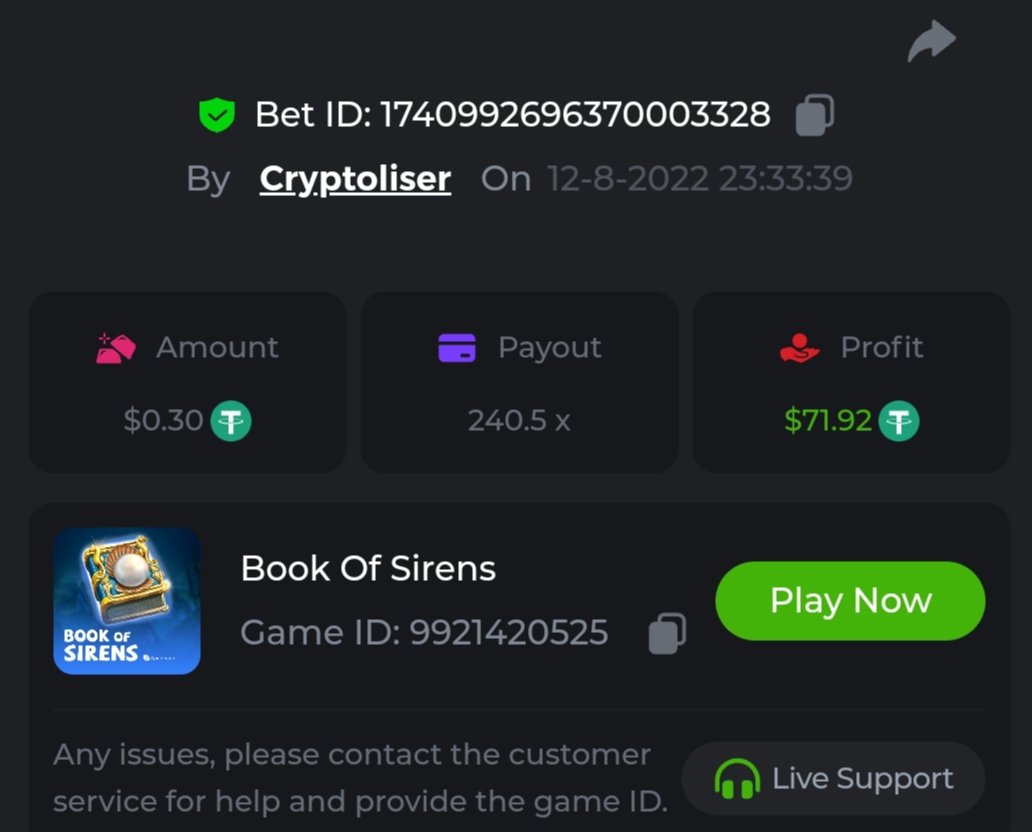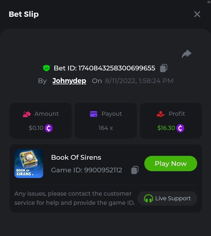 supermandl Posted August 11, 2022 Share Posted August 11, 2022 Book Of Sirens Wow Moment Bet ID: #1740869942778535296 151.0002x Profit +0.23738290LTC Link to comment Share on other sites More sharing options...