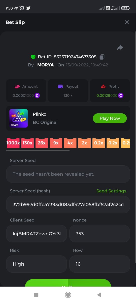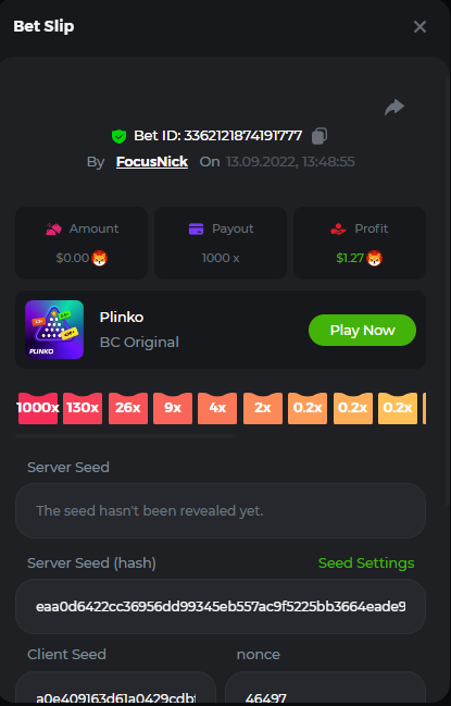 Black Tiger Posted September 13, 2022 Share Posted September 13, 2022 (edited) Read Carefully Before Start To Hunt Daily Challenges #13 : PlinkoHunt :Win the highest pay outMin Payout requirement 60xMin Level 4️Duration Starting : Now End time : 23.59 UTC Time How to Join? Only Post on BC.Game Telegram Official HEREMake screenshot + paste your bet link + tg user name To get bet link can check HERE Any coin allowedReward Prizes 1st Place....... $7 BCD2nd Place..... $5 BCD3rd Place...... $4 BCD 🎖4th Place......$3 BCD5th - 10 th Place......$1 BCD 🏵 Winners will be announcing next day after Roll Point ========================== On Going Event $4,000 Top Tier Evoplay Multiplier Battle! $2,500 Prestige Tower Legend Challenge #46 Soccer Top 5 league 100% cashback ! $250 BC.GAME SPORTS PARLAYS CHALLENGES #21 $500,000 Spinomenal's Grand Holiday Tournament TOUCHDOWN! NFL 50% Cashback ! Forum Daily ChallengesDiscord Daily CHallengesTelegram Daily Challenges Edited September 13, 2022 by Black Tiger 1 Link to comment Share on other sites More sharing options...