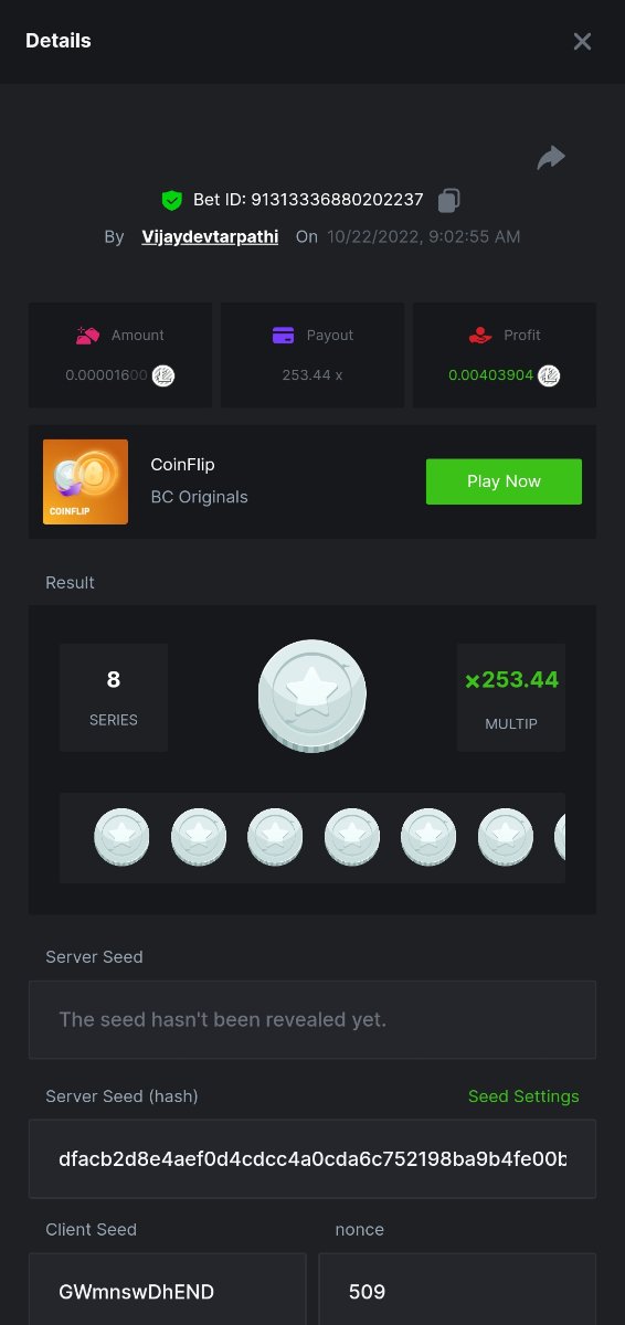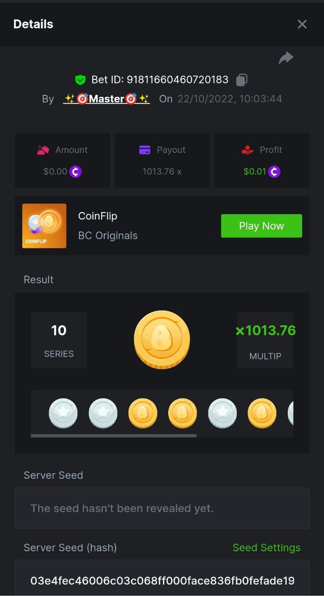 Black Tiger Posted October 22, 2022 Share Posted October 22, 2022 Read Carefully Before Start To Hunt Daily Challenges #46: CoinflipHunt :Win the highest pay outMin Payout requirement 100xMin Level 4️Duration Starting : Now End time : 23.59 UTC Time How to Join? Make screenshot + paste your bet link + UID or Profile link Any coin allowedReward Prizes 1st Place....... $7 BCD2nd Place..... $5 BCD3rd Place...... $4 BCD 🎖4th Place......$3 BCD5th - 10th Place......$1 BCD 🏵 Winners will be announcing next day after Roll Point 2 Link to comment Share on other sites More sharing options...