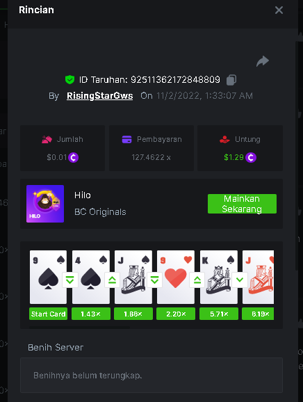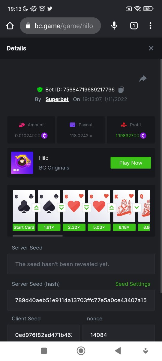 Black Tiger Posted November 1, 2022 Share Posted November 1, 2022 Read Carefully Before Start To Hunt Daily Challenges #56: HILOHunt :Win the highest pay outMin Payout requirement 100xMin Level 4️Duration Starting : Now End time : 23.59 UTC Time How to Join? Make screenshot + paste your bet link + UID or Profile link mini bet amount - 0.01$ Any coin allowedReward Prizes 1st Place....... $7 BCD2nd Place..... $5 BCD3rd Place...... $4 BCD 🎖4th Place......$3 BCD5th - 10th Place......$1 BCD 🏵 Winners will be announcing next day after Roll Point 3 Link to comment Share on other sites More sharing options...