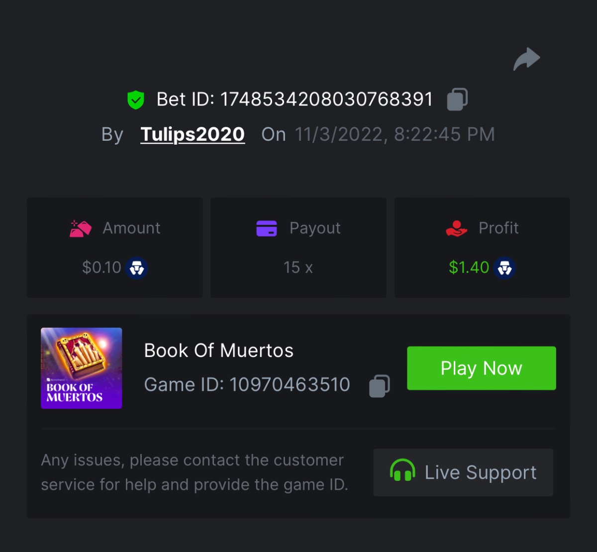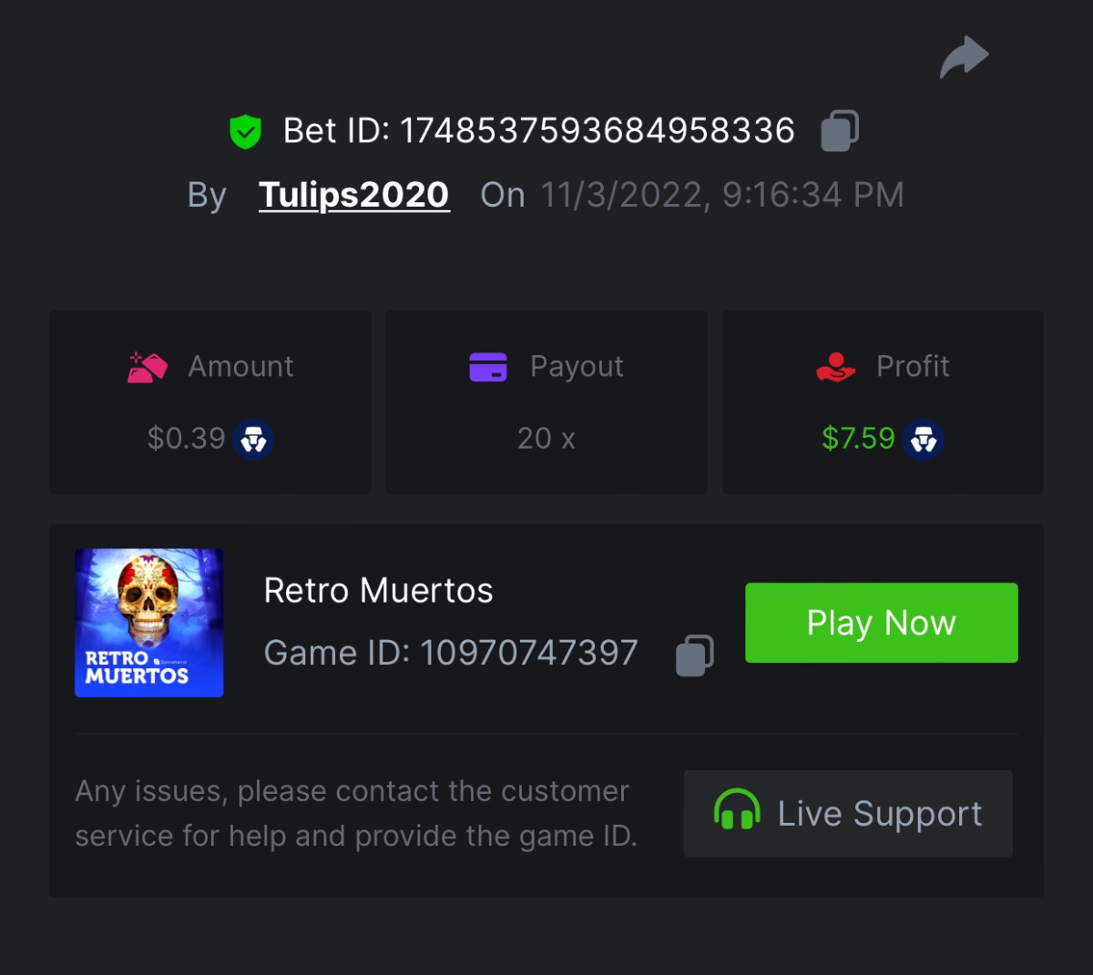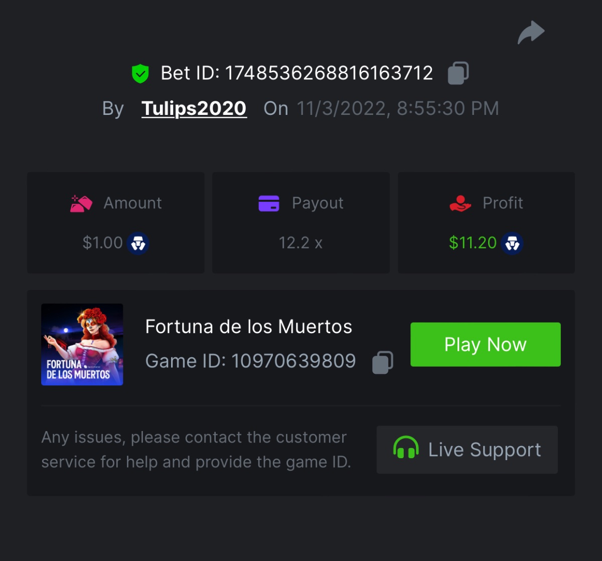 Mae_Ph_4Nayz Posted November 4, 2022 Share Posted November 4, 2022 (edited) https://bc.game/#/sd/10WGC1U83W4RV7 https://bc.game/#/sd/10WGCC2VX2A49F Edited November 4, 2022 by MaeGear5thwb adding wins Link to comment Share on other sites More sharing options...
