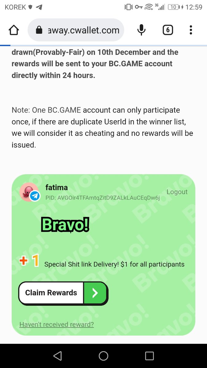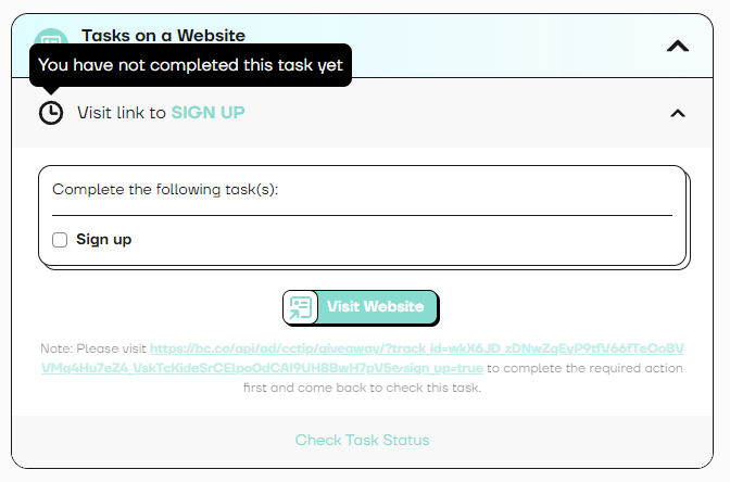 Creepybits Posted November 24, 2022 Share Posted November 24, 2022 4 hours ago, Vlkyrie said: Step by step join, $30,000 Grand Giveaway 1. Only for players who have never registered for BC.GAME, those who already have an account cannot participate, be careful, multi-accounts are prohibited. 2. Click the giveaway link: $30,000 Grand Giveaway 3. After clicking the giveaway link, a new cWalet page (cctip) will open, please login using the available options, either via a tweeter account, telegram, discord, reddit, or email4. After logging in, must complete the requested task, for the first task new players must - Follow, Like, and Retweet Twitter BC.GAME Official there is a button that can be clicked to go directly to twitter5. After completing the Twitter task, the second task is to SIGN UP via the link provided, and please remember, this is only for players who have just joined, those who have joined cannot participate in this event.6. After completed Sign UP, back to the cWalet page (cctip) and click check status, there will be a notification and a button if you successfully SIGN UP, and complete all tasks, and a button to claim the prize7. Done, The Shit link will be sent to your BC.GAME account directly within 24 hours after the giveaway event finished (00:00 UTC, Dec 10th). Why is it trying to force me to sign up with a new account? Link to comment Share on other sites More sharing options...