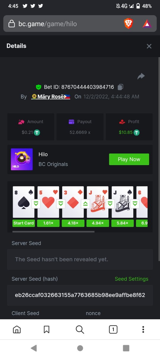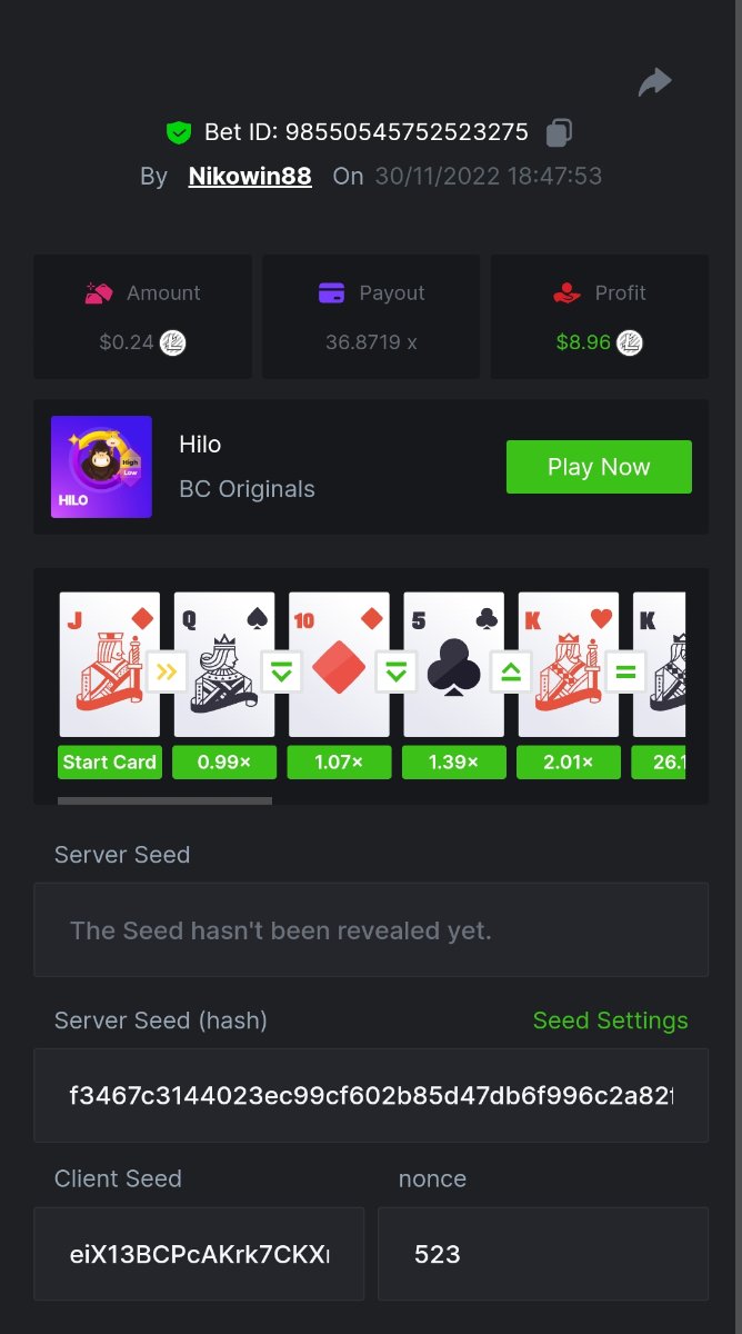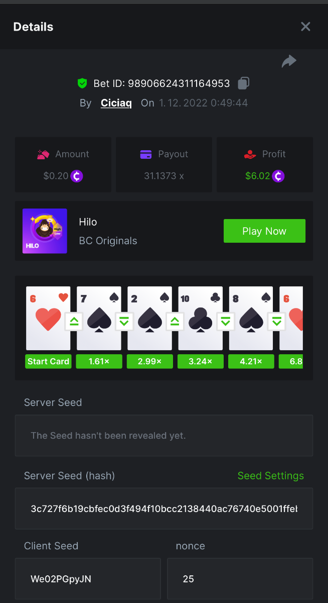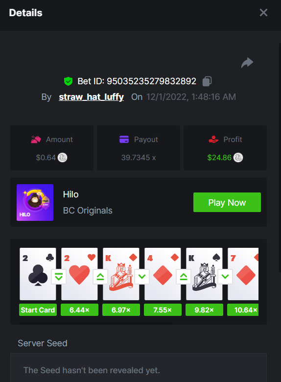 observe Posted December 1, 2022 Share Posted December 1, 2022 On 11/28/2022 at 7:59 AM, bassabar said: Highest multiplier: 3063.2771x Bounty: Yes Multiplier: 3063.2771x https://bc.game/#/sd/10YBXJVYKCYBKJ Bounty: https://bc.game/#/sd/10Y54J15QWE68J I knew it.... You are spy!! Arrest him at once. . . btw the quad king you hit in January? Such amazing, very time travel... Link to comment Share on other sites More sharing options...