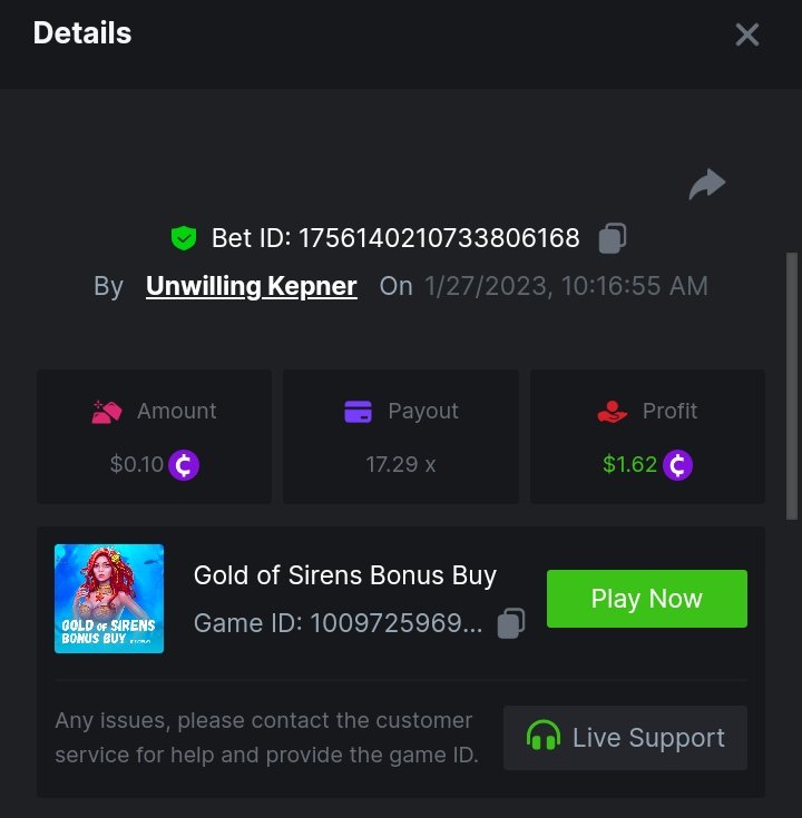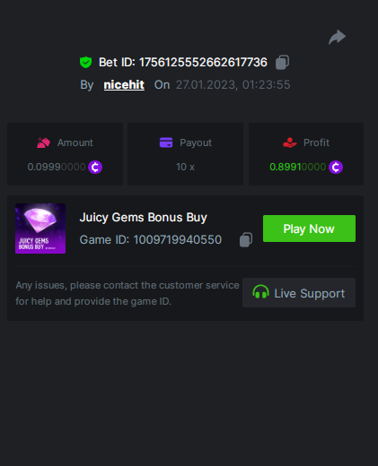 Ciciaq Posted January 26, 2023 Share Posted January 26, 2023 Gold of Sirens Bonus Buy - 57.35x https://bc.game/#/sd/11282WVPKUT8GJ Rueda De Chile Bonus Buy - 58.56x https://bc.game/#/sd/1127WIMREXW55F Hot Volcano Bonus Buy - 100.10x https://bc.game/#/sd/1127ZYTE7EYVIR Mega Greatest Catch Bonus Buy - 120.12x https://bc.game/#/sd/1127XRCR8O1RTF Juicy Gems Bonus Buy - 39.04x https://bc.game/#/sd/1127Y350U9QEQB Hot Triple Sevens Special - 106.11x https://bc.game/#/sd/1127YKK7NOA4NN Inner Fire Bonus Buy - 37.24x https://bc.game/#/sd/1127ZOEN4DQCCZ Massive Luck - 77.58x https://bc.game/#/sd/112817H65XPZ4J ========================================================= Bounty - 50x https://bc.game/#/sd/11283HK6V7NAC3 Link to comment Share on other sites More sharing options...