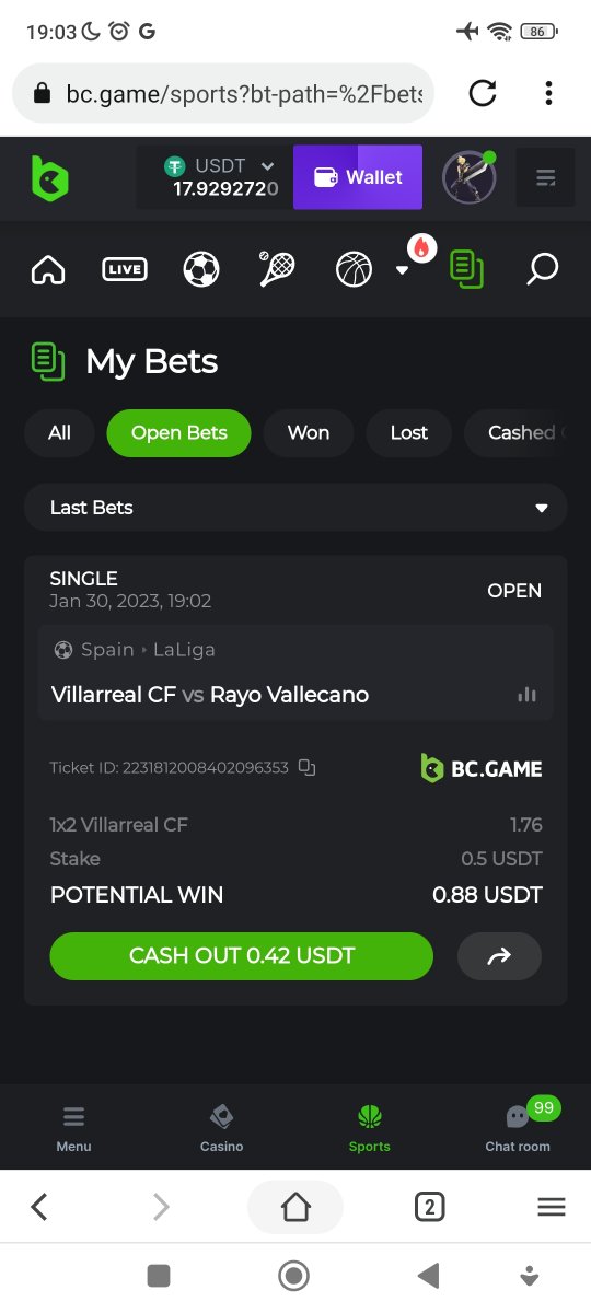 Tato_123 Posted January 31, 2023 Author Share Posted January 31, 2023 ย results SpainLaLiga ย Villarreal CF vs Rayo Vallecano 30/junary/ 20:00 utc 0-1 @scongnamsss odds 2.90 stake 0.55$ price 1) 6$ 1 Link to comment Share on other sites More sharing options...