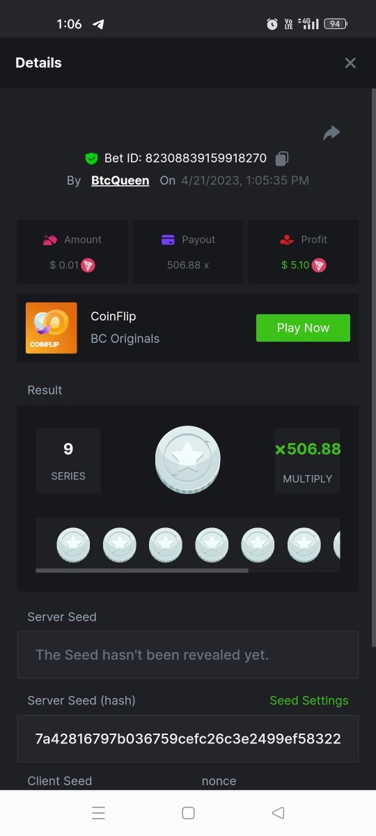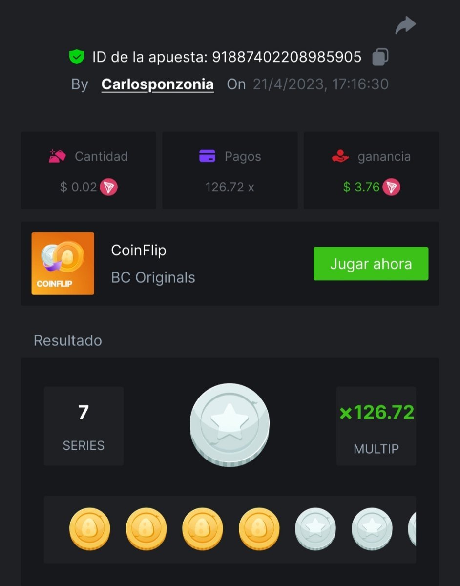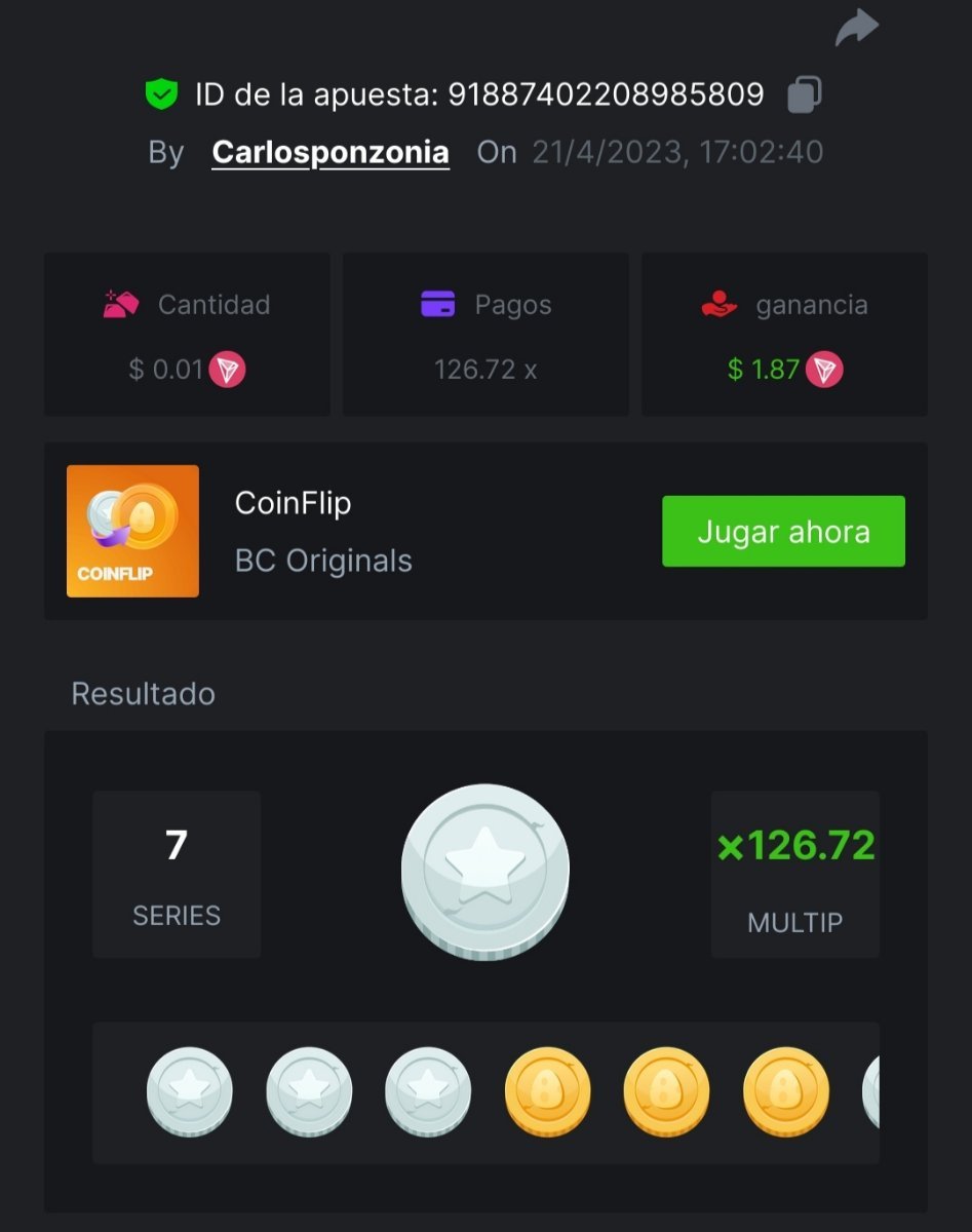 Maksypro Posted April 21, 2023 Share Posted April 21, 2023 Read Carefully Before Start To Hunt Daily Challenges #212 COIN FLIP Hunt : Win the highest multiplier Min Multiplier requirement 100x Min Level 4 ️Duration Starting : Now End time : 23.59 UTC Time How to Join? Make screenshot + paste your bet link + UID or Profile link Any coin, with min bet 0.01 USD is allowed (jb/bb/bcl not allowed) Reward Prizes 1st Place.....$7 BCD 2nd Place.....$5 BCD 3rd Place.....$4 BCD 4th Place.....$3 BCD 5th Place.....$2 BCD 🏵 Winners will be announcing next day after Roll Point! 2 Link to comment Share on other sites More sharing options...