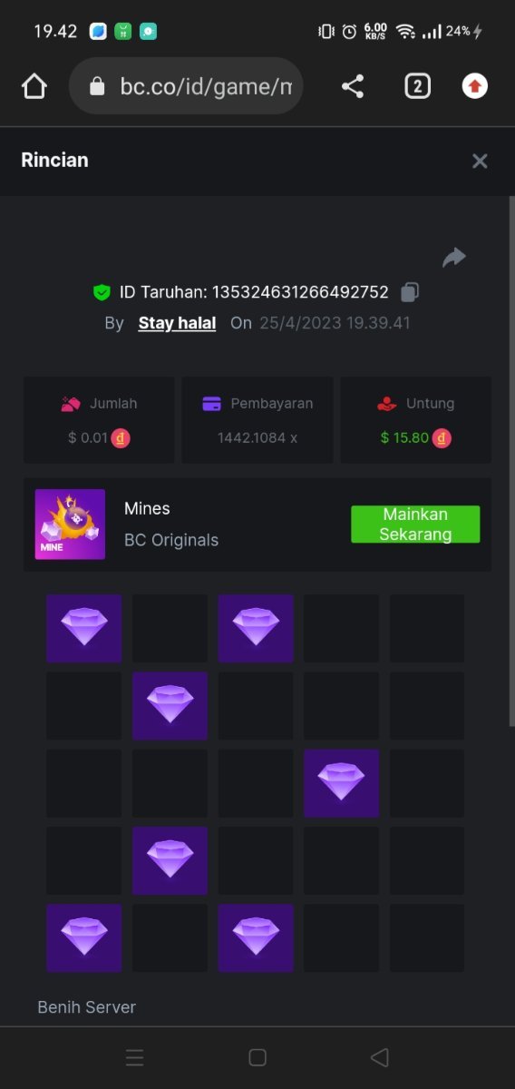 Maksypro Posted April 25, 2023 Share Posted April 25, 2023 Read Carefully Before Start To Hunt Daily Challenges #216 MINES Hunt : Win the highest multiplier Min Payout requirement 100x Min Level 4 ๏ธDuration Starting : Now End time : 23.59 UTC Time How to Join? Make screenshot + paste your bet link + UID or Profile link Any coin, with min bet 0.01 USD is allowed (jb/bb/bcl not allowed) Reward Prizes 1st Place.....$7 BCD 2nd Place.....$5 BCD 3rd Place.....$4 BCD 4th Place.....$3 BCD 5th Place.....$2 BCD ๐ต Winners will be announcing next day after Roll Point! Link to comment Share on other sites More sharing options...