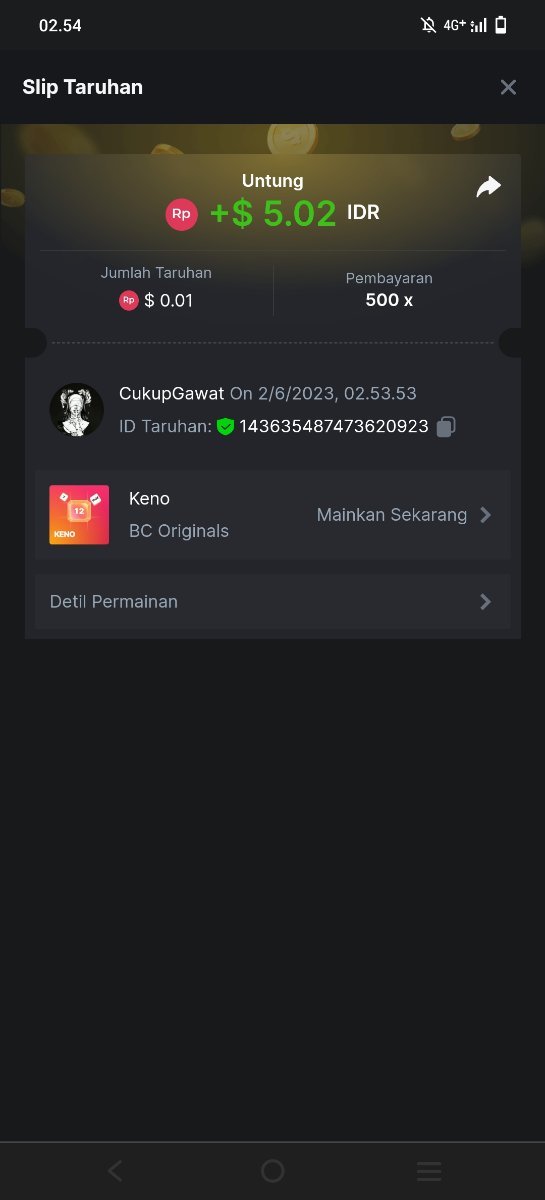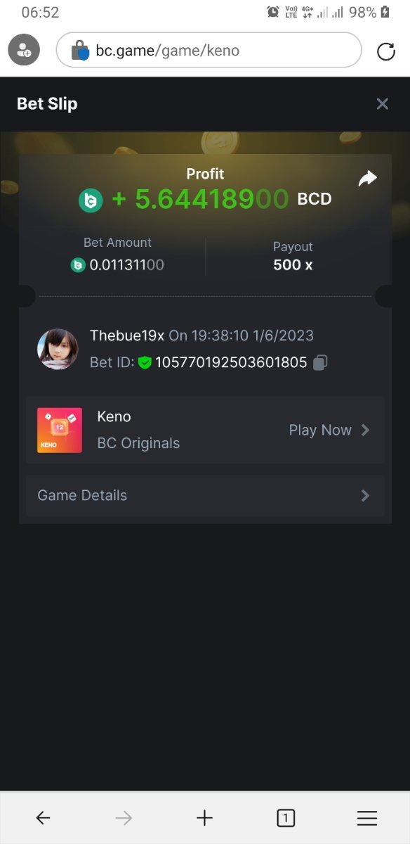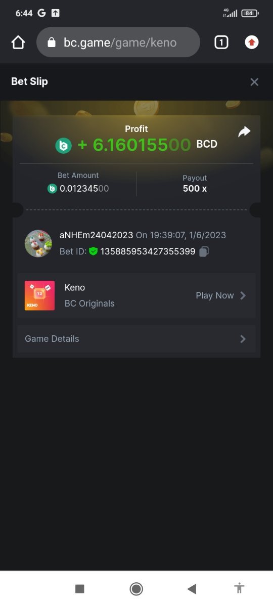 Maksypro Posted June 1, 2023 Share Posted June 1, 2023 Read Carefully Before Start To Hunt Daily Challenges #253 KENO Hunt : Win the highest multiplier Min Multiplier requirement 100x Min Level 4 ๏ธDuration Starting : Now End time : 23.59 UTC Time How to Join? Make screenshot + paste your bet link + UID or Profile link Any coin, with min bet 0.01 USD is allowed (jb/bb/bcl not allowed) Reward Prizes 1st Place.....$7 BCD 2nd Place.....$5 BCD 3rd Place.....$4 BCD 4th Place.....$3 BCD 5th Place.....$2 BCD ๐ต Winners will be announcing next day after Roll Point! 3 Link to comment Share on other sites More sharing options...