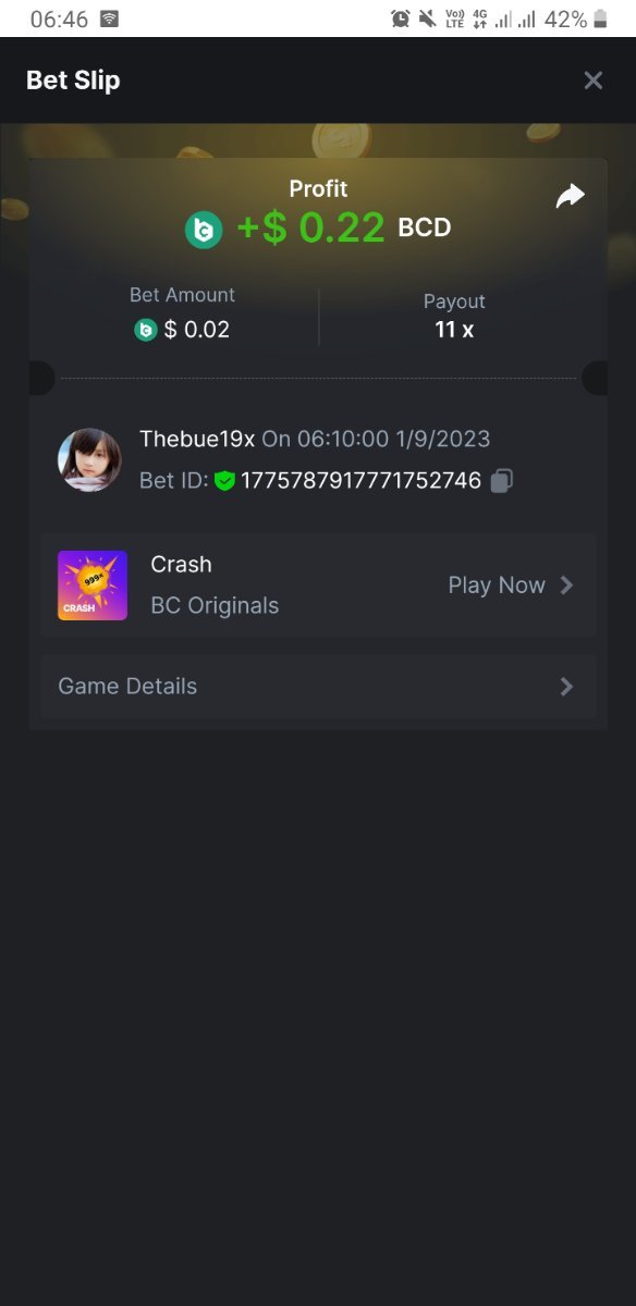 5th place . . . .  2$ BCD  - Thebue19x - 11x  0.22
