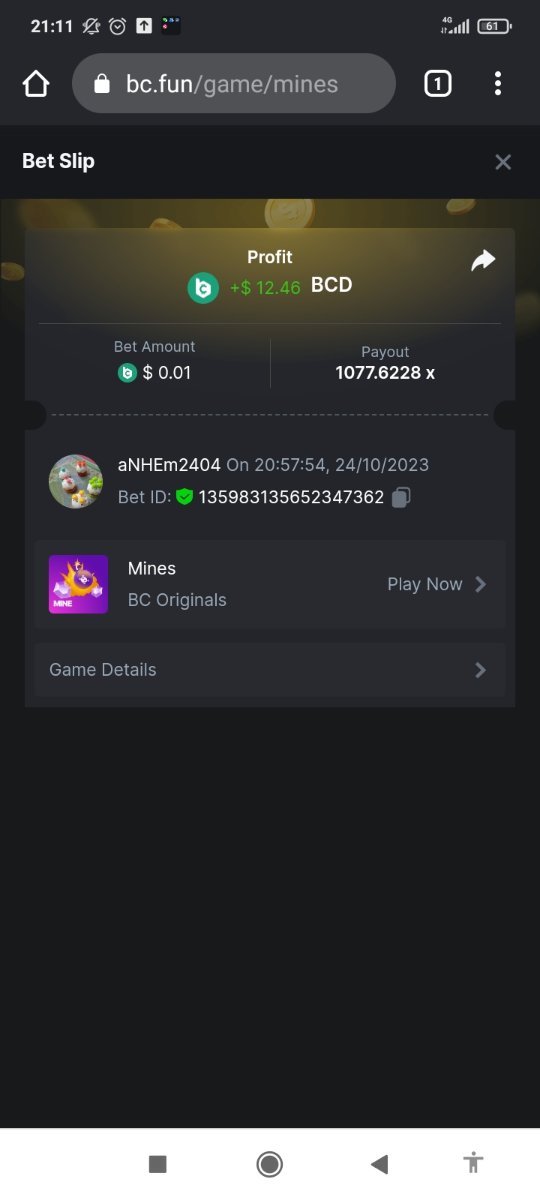 Moderator Giandreas Posted October 24, 2023 Moderator Share Posted October 24, 2023 Read Carefully Before Start To Hunt Forum Daily Challenges #397Hunt : Mines Win the highest pay out Min Payout : 50x Min Level 4️Duration Starting : Now End time : 23.59 UTC Time How to Join? Make screenshot + paste your bet link + UID or Profile link Any coin, with min bet 0.01 USD is allowed (jb/bb/bcl not allowed)Reward Prizes 1st Place.....$7 BCD 2nd Place.....$5 BCD 3rd Place.....$4 BCD 4th Place.....$3 BCD 5th Place.....$2 BCD 🏵 Winners will be announcing next day after Roll Point! Link to comment Share on other sites More sharing options...