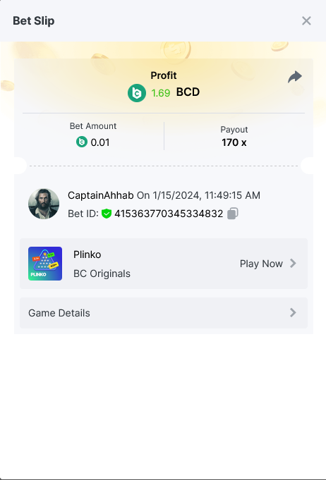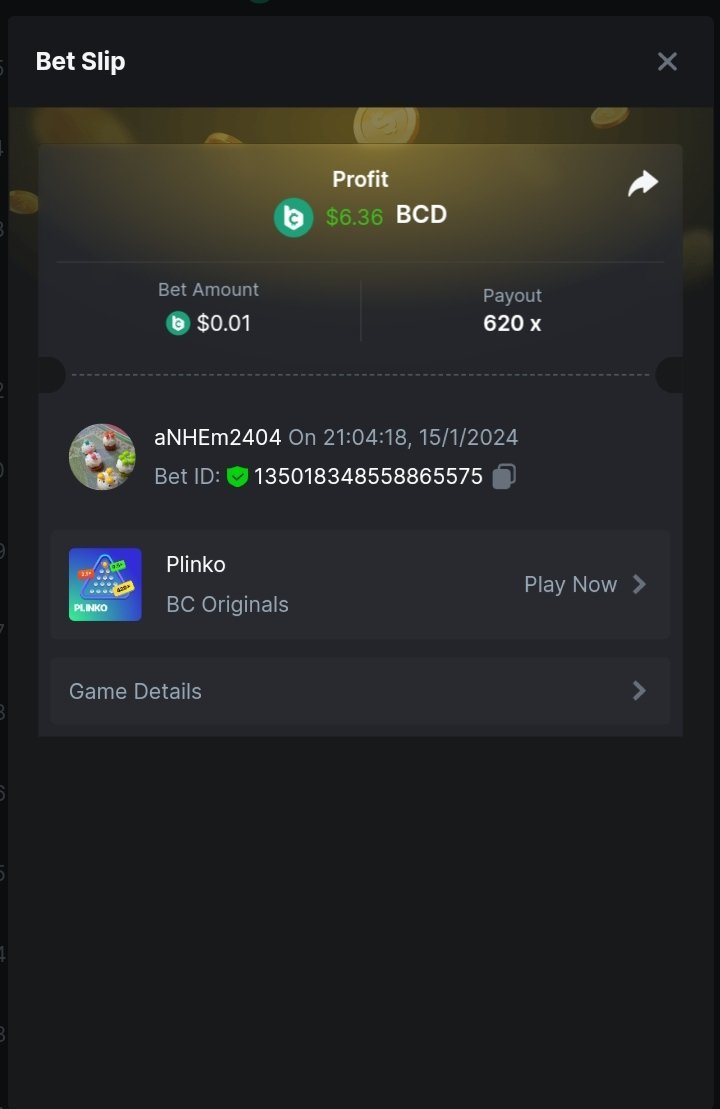 Moderator Giandreas Posted January 15, 2024 Moderator Share Posted January 15, 2024 Read Carefully Before Start To Hunt Forum Daily Challenges #480Hunt : Plinko Win the highest pay out Min Payout : 120x Min Level 10️Duration Starting : Now End time : 23.59 UTC Time How to Join? Make screenshot + paste your bet link + UID or Profile link Any coin, with min bet 0.01 USD is allowed (jb/bb/bcl not allowed)Reward Prizes 1st Place.....$7 BCD 2nd Place.....$5 BCD 3rd Place.....$4 BCD 4th Place.....$3 BCD 5th Place.....$2 BCD 🏵 Winners will be announcing next day after Roll Point! Link to comment Share on other sites More sharing options...