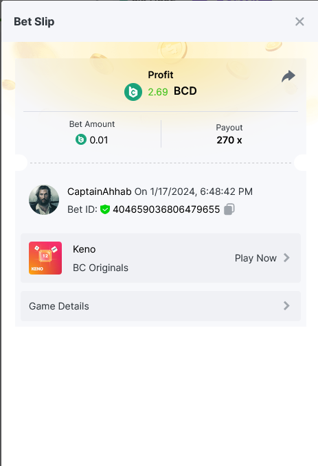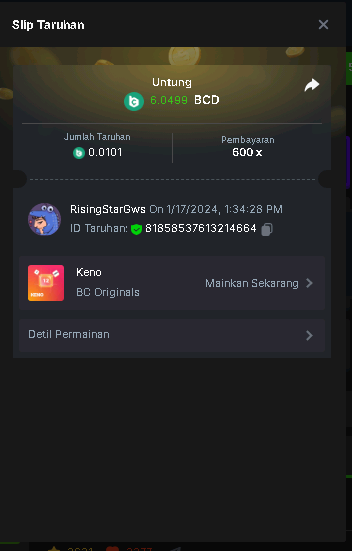 Moderator Giandreas Posted January 17, 2024 Moderator Share Posted January 17, 2024 Read Carefully Before Start To Hunt Forum Daily Challenges #482Hunt : Keno Win the highest pay out Min Payout : 90x Min Level 10️Duration Starting : Now End time : 23.59 UTC Time How to Join? Make screenshot + paste your bet link + UID or Profile link Any coin, with min bet 0.01 USD is allowed (jb/bb/bcl not allowed)Reward Prizes 1st Place.....$7 BCD 2nd Place.....$5 BCD 3rd Place.....$4 BCD 4th Place.....$3 BCD 5th Place.....$2 BCD 🏵 Winners will be announcing next day after Roll Point! 1 Link to comment Share on other sites More sharing options...