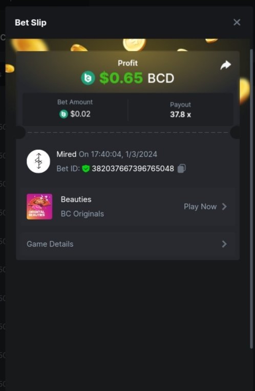 Moderator Giandreas Posted March 1, 2024 Moderator Share Posted March 1, 2024 Read Carefully Before Start To Hunt Forum Daily Challenges #526Hunt : Oriental Beauties Win the highest pay out Min Payout : 20x Min Level 10 ️Duration Starting : Now End time : 23.59 UTC Time How to Join? Make screenshot + paste your bet link + UID or Profile link Any coin, with min bet 0.01 USD is allowed (jb/bb/bcl not allowed) Reward Prizes 1st Place.....$7 BCD 2nd Place.....$5 BCD 3rd Place.....$4 BCD 4th Place.....$3 BCD 5th Place.....$2 BCD 🏵 Winners will be announcing next day after Roll Point! Link to comment Share on other sites More sharing options...