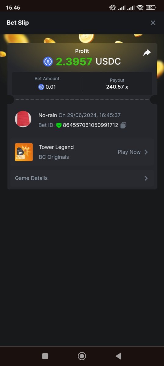 Moderator Giandreas Posted June 29, 2024 Moderator Share Posted June 29, 2024 Read Carefully Before Start To Hunt Forum Daily Challenges #646Hunt : Tower Legend Win the highest pay out Min Payout : x38 Min Level 10 ️Duration Starting : Now End time : 23.59 UTC Time How to Join? Make screenshot + paste your bet link + UID or Profile link Any coin, with min bet 0.01 USD is allowed (jb/bb/bcl not allowed) Reward Prizes 1st Place.....$7 BCD 2nd Place.....$5 BCD 3rd Place.....$4 BCD 4th Place.....$3 BCD 5th Place.....$2 BCD 🏵 Winners will be announcing next day after Roll Point! Link to comment Share on other sites More sharing options...