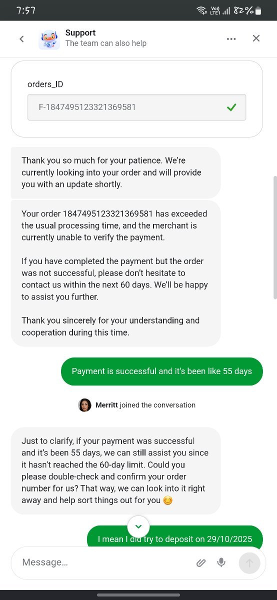 In this case, the system clearly shows a deposit failure, but the amount was successfully received by the merchant, and all proof from my side is genuine and already submitted.
