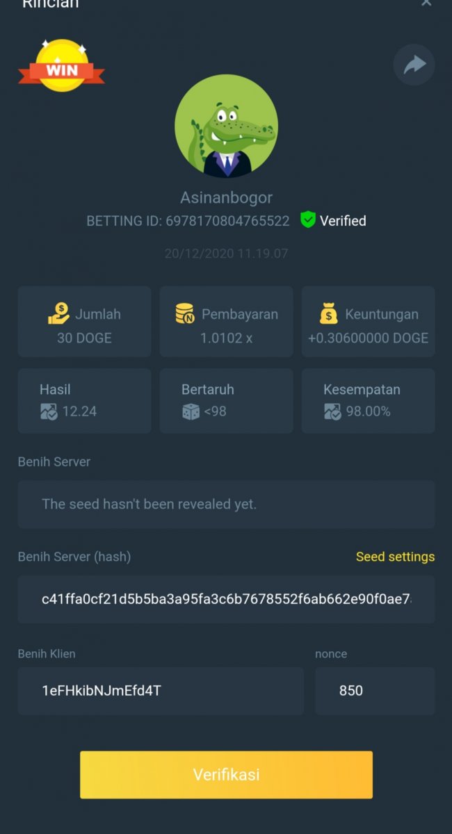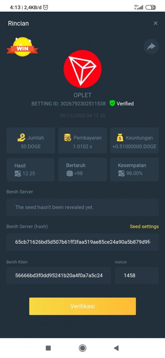 Reyz23 Posted December 20, 2020 Share Posted December 20, 2020 username : Reyz22 1. roll: 12.23 || bet id: 732592571689274 2. roll: 12.23 || bet id: 6940383682500527 3. roll: 12.23 || bet id: 7011495456014797 4. roll: 12.23 || bet id: 7011495456023300 ============================================================= 1. roll: 12.24 || bet id: 6940383682495202 2. roll: 12.24 || bet id: 6940383682495202 =========================================================== roll: 12.25 || bet id: 6940383682496370 Link to comment Share on other sites More sharing options...