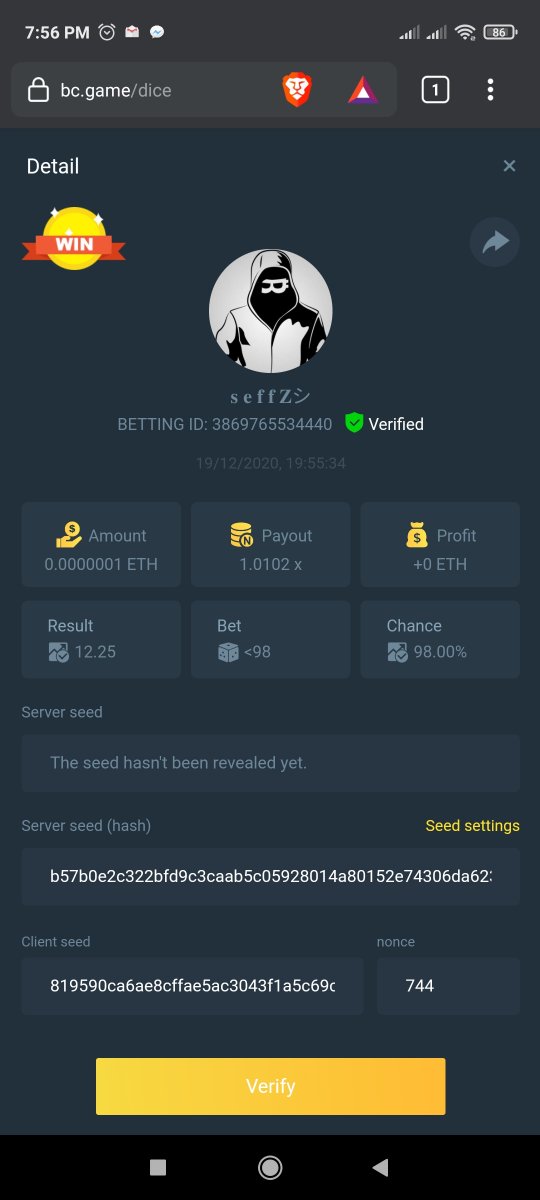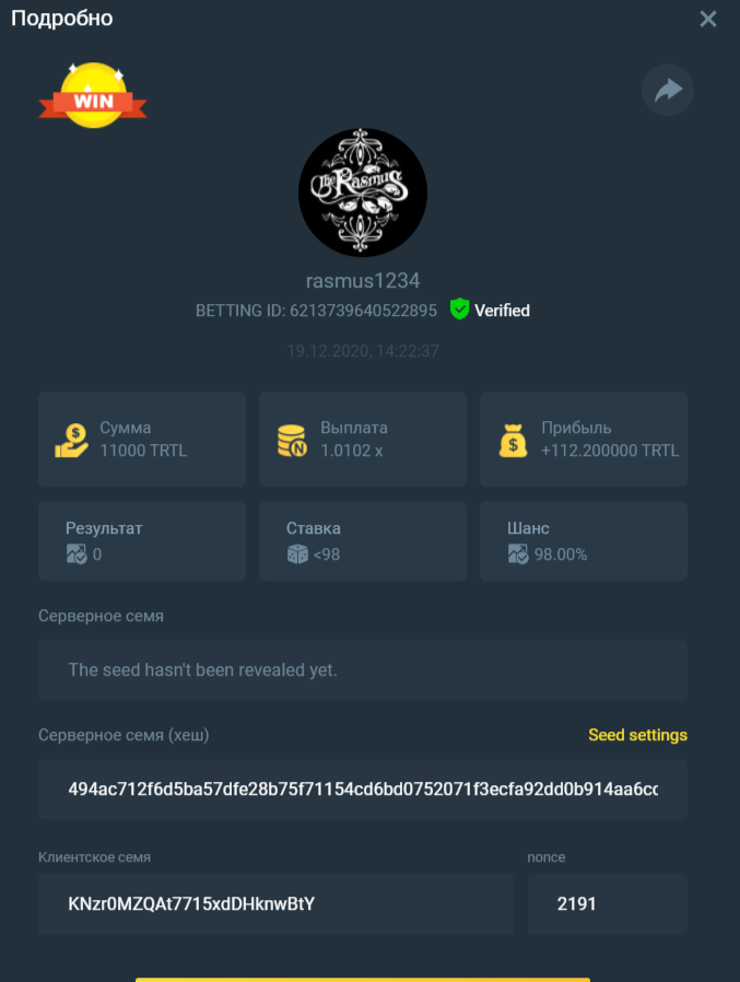 PrettyGoods Posted December 20, 2020 Share Posted December 20, 2020 (edited) Username: kakegurui Bet ID's: Result: 0 6994946947023855 Edited December 20, 2020 by PrettyGoods Forgot to put result above the image Link to comment Share on other sites More sharing options...