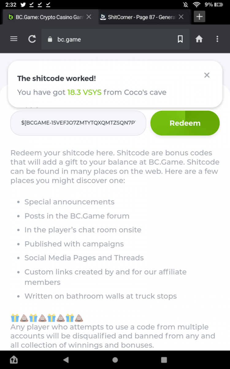Cris Van Degrift Posted April 2, 2021 Author Share Posted April 2, 2021 I have some information for all of you shitheads out there Jonesing for a code. I clicked it 4 minutes after posted and won. Its all about first come first served. Thank you Danny, and B.C. Link to comment Share on other sites More sharing options...