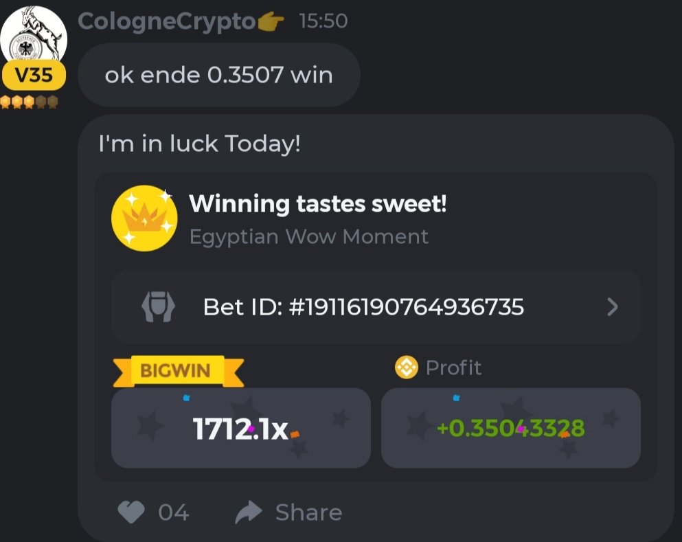 Admin Featured Comment BCGame_Bob Posted August 26, 2021 Admin Featured Comment Share Posted August 26, 2021 Hey all, just wanted to highlight the rules again clearly as I see some submissions are incomplete whilst few others are not correct. The event has 2 parts that need to be metA. Highest multiplier in any one of the below listed games, so essentially 1 winning bet to be shared Pyramid King (Pragmatic) Golden Sphinx (Wazdan) Azrabah Wishes (Gameart) Tut’s Twister (Yggdrasil) B. Win the highest multiplier you can on BC.Game's in-house slotEgyptian Adventure So total 2 bets need to be shared, 1 from A and another one from BAlso pay attention to other requirements listed below Minimum payout to qualify for both is 15x Must be VIP10 or higher in order to enter this challenge. Bets to be minimum $0.25 equivalent Link to comment Share on other sites More sharing options...