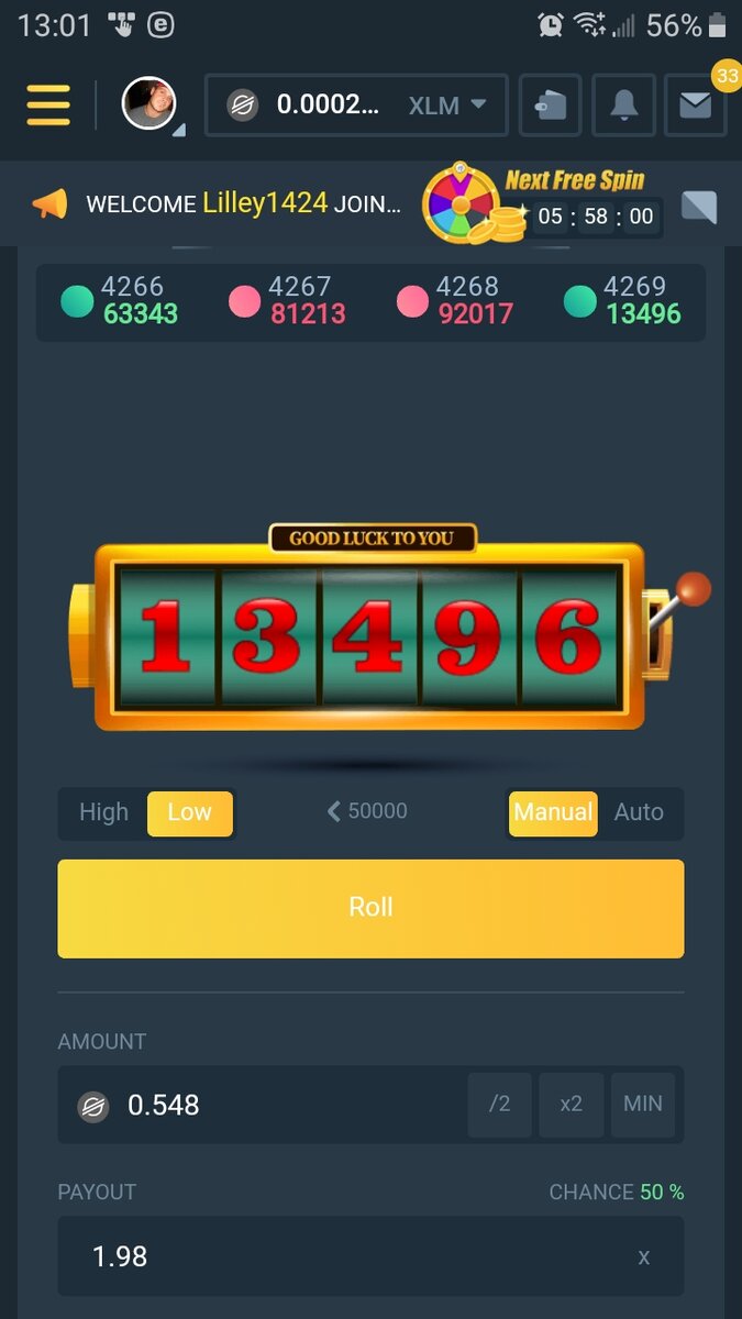 Hey guys it's me again. I won on Hash Dice but it marked it as loss. I actually thought to screen shot this time. Not interested in coin ammount back it was Faucet. Just helping yall. Attached are 2 screenshots.