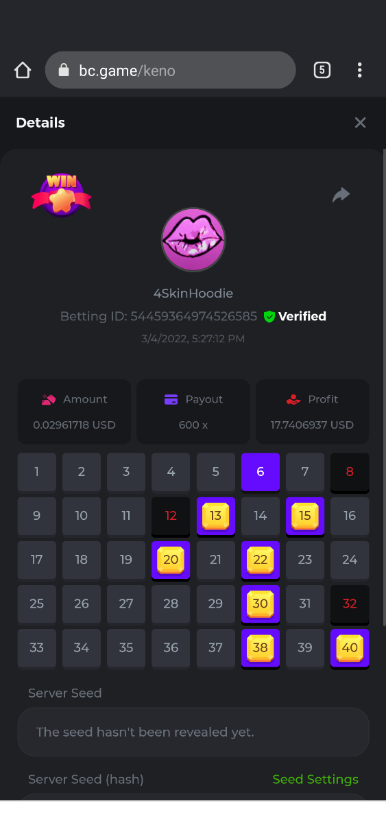 Today we have a Keno single challenge going on