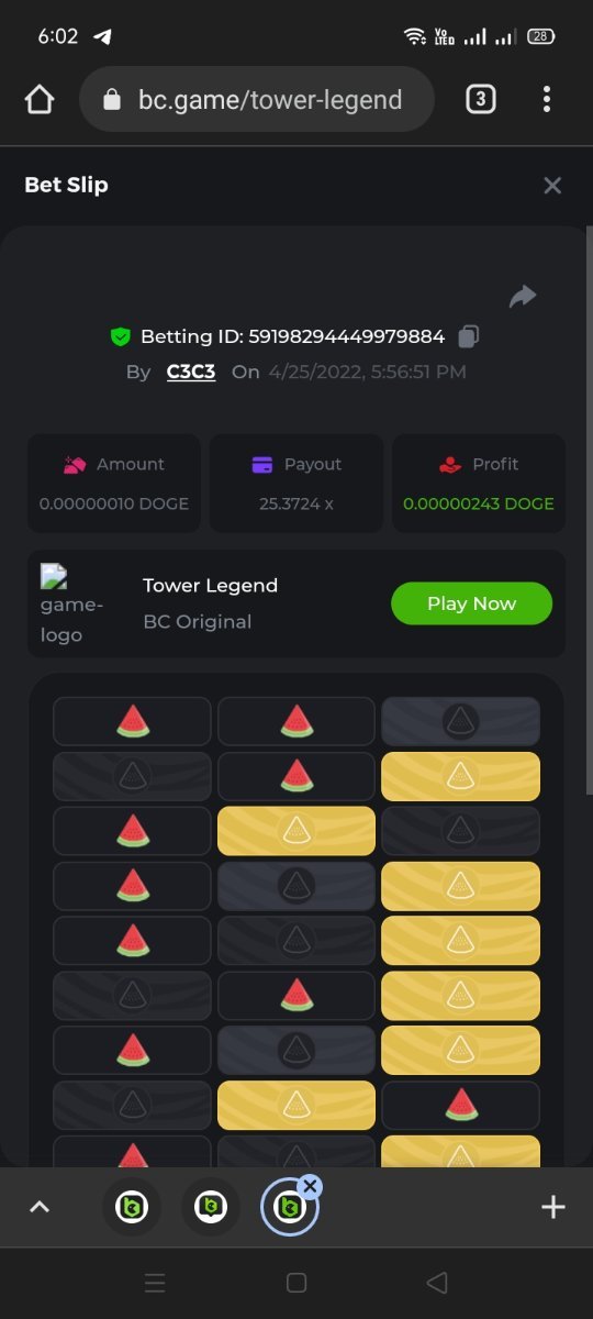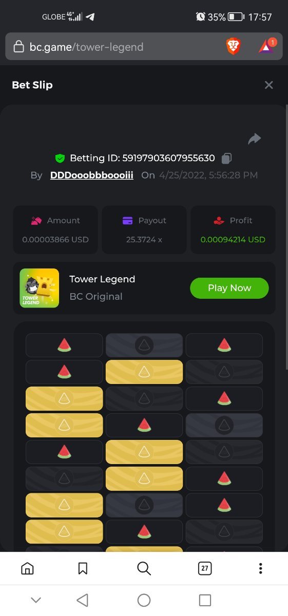 Kuhanin ang 25.37X  sa larong TOWER LEGENDS   ( Difficult : Medium )