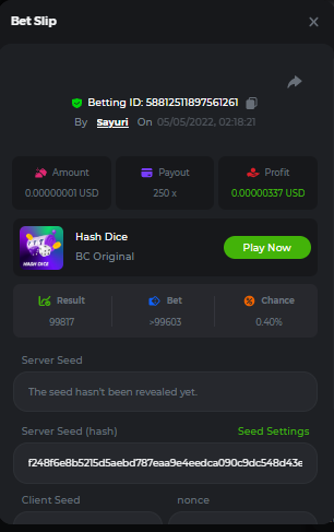 Tente acertar o maior número possível de multiplicadores no Hash-Dice da lista a seguir...