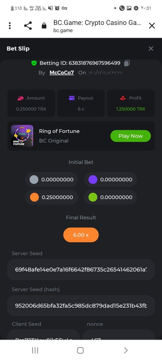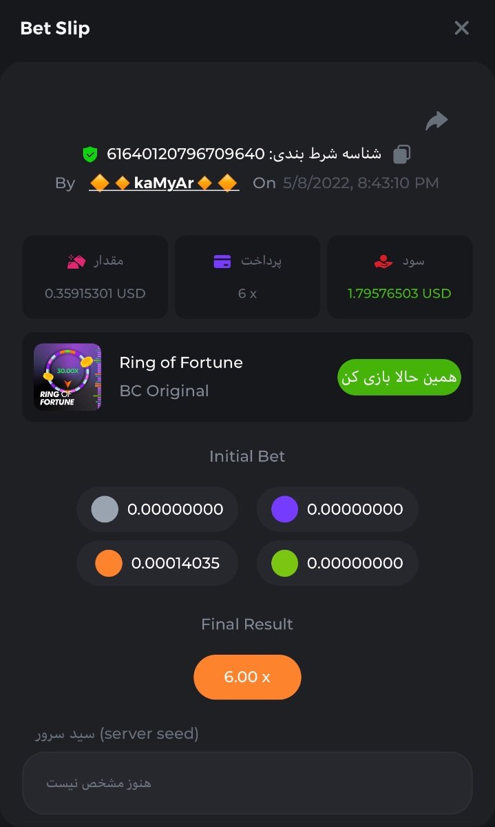 Eric-bc-love Posted May 4, 2022 Share Posted May 4, 2022 (edited) سلام به دوستان عزیز Ring Of Fortune | چالش : کسب حداڪثر ضرایب پیاپی در بازی حلقه ثروت چالش این هفتہ بہ این شکل مے باشد ڪہ ڪاربران باید بیشترین تعداد ضریب 6 ایڪس پیاپی را ڪسب ڪرده و به اشتراڪ بگذارند . مجموع ضرایب 6 ایڪس متوالی به عنوان امتیاز نہایے ڪاربر در نظر گرفتہ خواهد شد . هر ڪاربر 1 بار مجاز به ارسال شات و ثبت ریپلای مے باشند مثال : https://bc.game/sd/?sd=10K3GRXJUA0G0J https://bc.game/sd/?sd=10K3GTGFDMM32R https://bc.game/sd/?sd=10K3GU8D6QRJ0Z شرایط شرڪت در چالش حداقل پایه شرط : مینیموم تمامی ارزها به جز جی بی حداقل لول ڪاربر : ندارد نڪات بسیار مهم : دوستان دقت ڪنید ڪہ ارسال لینڪ تمام شرطهایی ڪہ در شات اسڪرین ارسالے شما مشاهده مےشود، الزامے مے باشد و همچنین از ادیت ڪردن ریپلای خودداری ڪنید . ریپلای هایے ڪہ ادیت شده باشند حذف شده و فرصت شما را از بین خواهد برد . پس نہایت دقت رو در هنگام اشتراڪ شرطهاے خودتون داشتہ باشید در مثال بالا من 3 ضریب 6 ایڪس گرفتم ڪہ 18 امتیاز برای من لحاظ میشہ . دوستان عزیز دقت ڪنید ڪہ ڪمترین تعداد توالی 3 ضریب می باشد . در صورت تساوی امتیازات دو ڪاربر ، امتیازاتے ڪہ پایہ شرط بالاترے (اولین شرط) از نظر دلاری داشتہ باشند در جایگاه بالاترے قرار خواهند گرفت و اگر از نظر دلاری هم برابر باشند زمان ارسال شرط ، ملاڪ سنجش خواهد بود جوایز نفر اول : 35 دلار نفر دوم : 15 دلار نفر سوم : 8 دلار نفرچهارم تا هفتم : نفری 3 دلار زمان پایان چالش : سہ شنبه 20 اردیبہشت / ساعت 23:59 لینڪ ڪانال چالش های انجمن و آموزشے : https://t.me/forumchallenge موفق و پرسود باشید ❤ Edited May 8, 2022 by Eric-bc-love 3 Link to comment Share on other sites More sharing options...