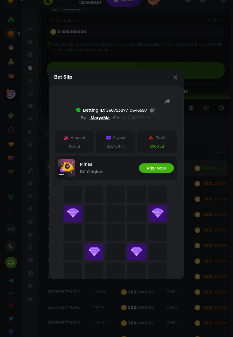 MRduck Posted May 5, 2022 Share Posted May 5, 2022 44 minutes ago, Eric-bc-love said: چالش سرعتی بازی ماین ماین / Mine شرایط چالشحداقل پایه شرط : مینیموم تمام ارزها و جی بی قابل قبول استحداقل لول کاربر : وجود نداردچالش : در این چالش هر کاربر مجاز به اشتراک 1 شرط با بالاترین ضریب خود می باشند . کاربرانی که تا ساعت 23:59 امشب بتوانند بالاترین ضریب را کسب کنند برنده خواهند بود . کمترین ضریب قابل اشتراک 20 ایکس می باشد نکات مهم :کاربران بایستی لینک شرط و شات اسکرین شرط خود را ارسال نمایند . دوستان دقت کنید که ارسال هر دو مورد الزامی می باشد در غیر اینصورت از چالش حذف خواهید شد. در صورت تساوی ضرایب دو یا چند کاربر پایه شرط بالاتر از نظر دلاری ملاک برتری خواهد بود و اگر از نظر دلاری هم دو کاربر با هم برابر باشند کاربری که سریعتر شرط خود را به اشتراک گذاشته باشد برنده می شود . ادیت ریپلای ها مجاز نمی باشد پس .دقت کنید دوستان عزیز . فقط یک بار فرصت دارید و عجله نکنید جوایزنفر اول : 5 دلارنفر دوم : 3 دلارنفر سوم : 2 دلارنفر چهارم تا هفتم : هر نفر 1 دلارزمان پایان چالش : امشب ساعت 23:59 ❤ موفق و پرسود باشید نمونه ارسالی : https://bc.game/sd/?sd=10JWF8HU02SMC3 Link to comment Share on other sites More sharing options...