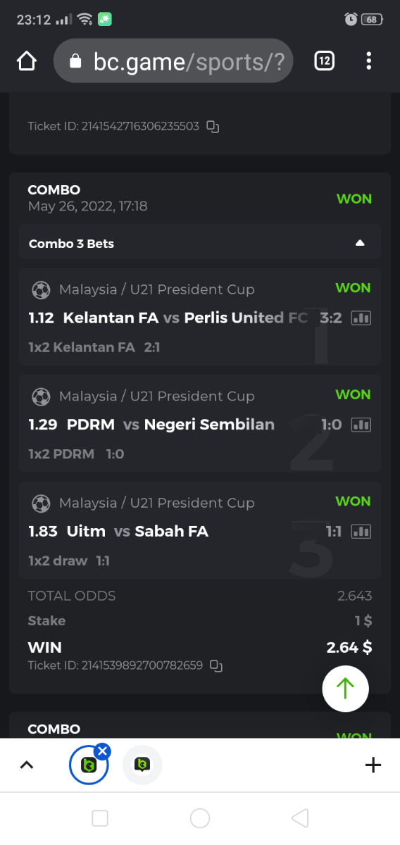 • To participate, post your Ticket ID, along with your Parlay link, as a reply to this thread as follows: Link bet: https://bc.game/sports/?bt-path=%2F%3FbtBookingCode%3D561A9D1 + Ticket ID 2126602890796736992
