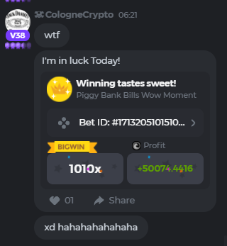 I got two amazing moments: the first, thanks to bcgame I've met a wonderful friend of mine, also gambler and cuban like me, our friendship remains although he's not gambling anymore  the second one is one day that I deposited 23 bucks in bnb and withdraw 298 because of two hits in a row in slots, which I love the most to play along with dice and keno. Gambling is entertaining if you control yourself, and bcgame has the best chat in all crypto casino, so it's a place to make friends add to have a real nice time playing, enjoy gambling mates but always safe. Congrats bc.Game!!!